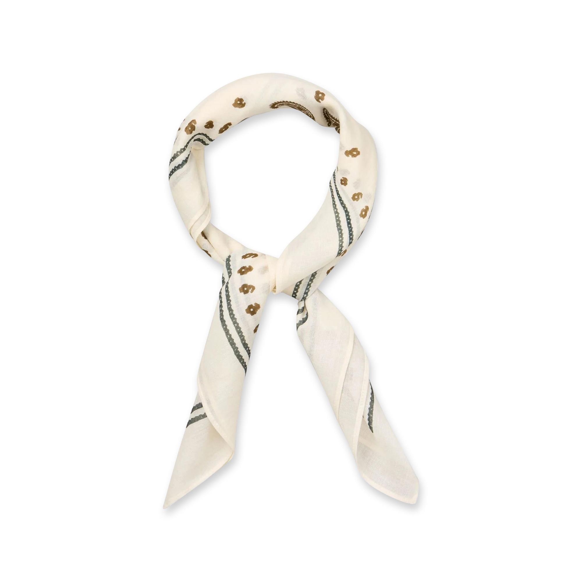 Le foulard carré Bloom Paisley Cotta mesure 55 x 55 cm. La base blanc bouleau clair combinée au motif cachemire crée un look classique. La qualité douce est agréable sur la peau et peut être portée autour du cou, dans les cheveux ou attachée à un sac.