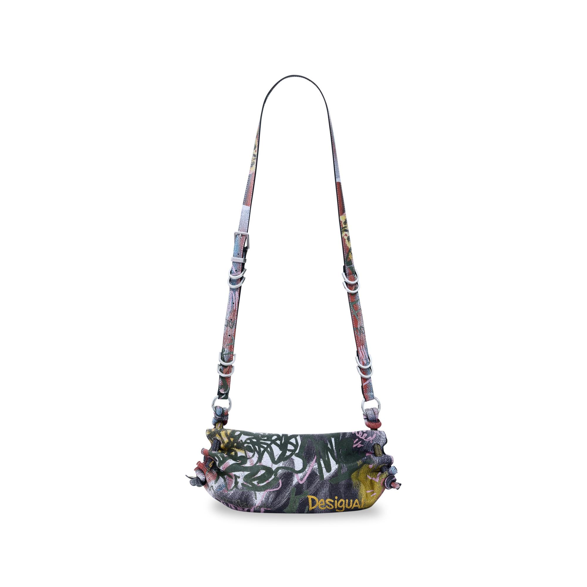 Ce sac à main arbore un imprimé graphique vif sur toute sa surface, en faisant un accessoire distinctif. Le sac est conçu avec un détail froncé sur les côtés, ajoutant une texture et une forme uniques. Il est équipé d'une fine bandoulière réglable, permettant des options de port polyvalentes.
