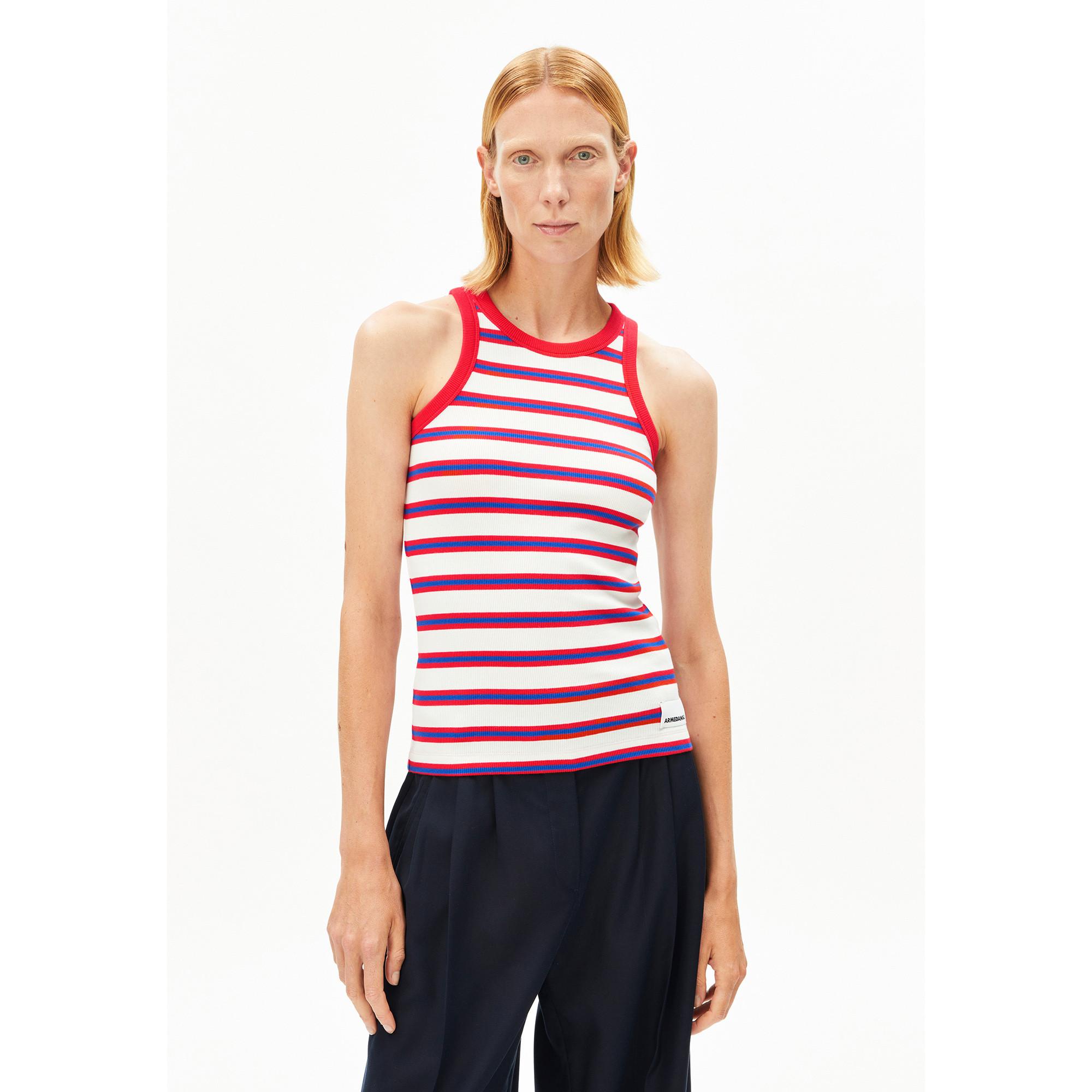 Ce débardeur arbore un motif rayé classique, offrant un ajout intemporel et polyvalent à toute garde-robe. Le design comprend un col rond et une coupe régulière confortable, le rendant adapté à diverses occasions décontractées.