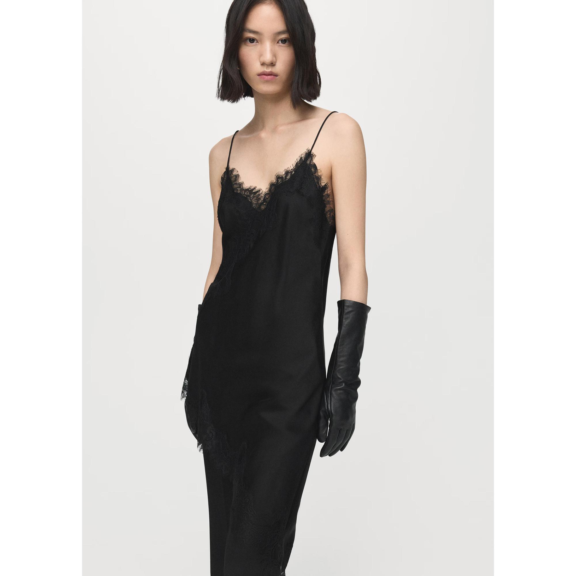 Ce top cami présente une délicate bordure en dentelle le long de l'encolure en V, offrant un look sophistiqué et élégant. Le design comprend de fines bretelles spaghetti et une silhouette fluide, ce qui en fait une pièce polyvalente pour diverses occasions.