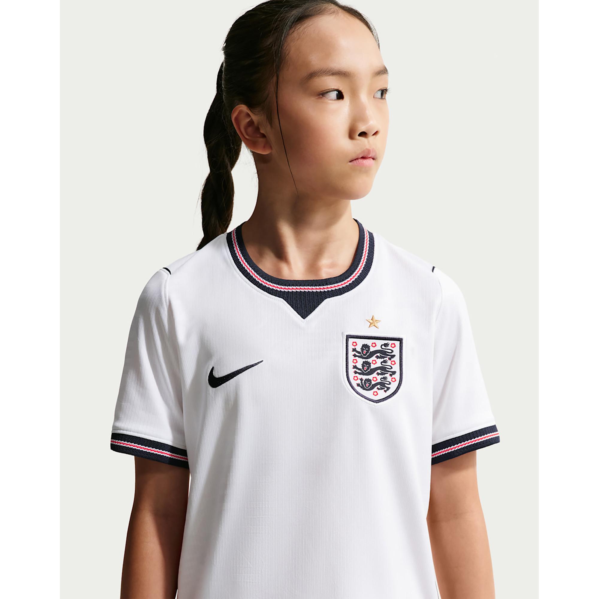 Le maillot domicile Angleterre 2026 de Nike s’inscrit sous la devise « Un seul pays. Une seule famille. » et célèbre l’unité et la diversité. Son motif tricoté raffiné rend hommage aux cultures et aux personnes qui composent la nation des Three Lions. Son design classique enrichi de détails modernes allie héritage et football contemporain. La matière légère et respirante assure un confort optimal sur et en dehors du terrain.