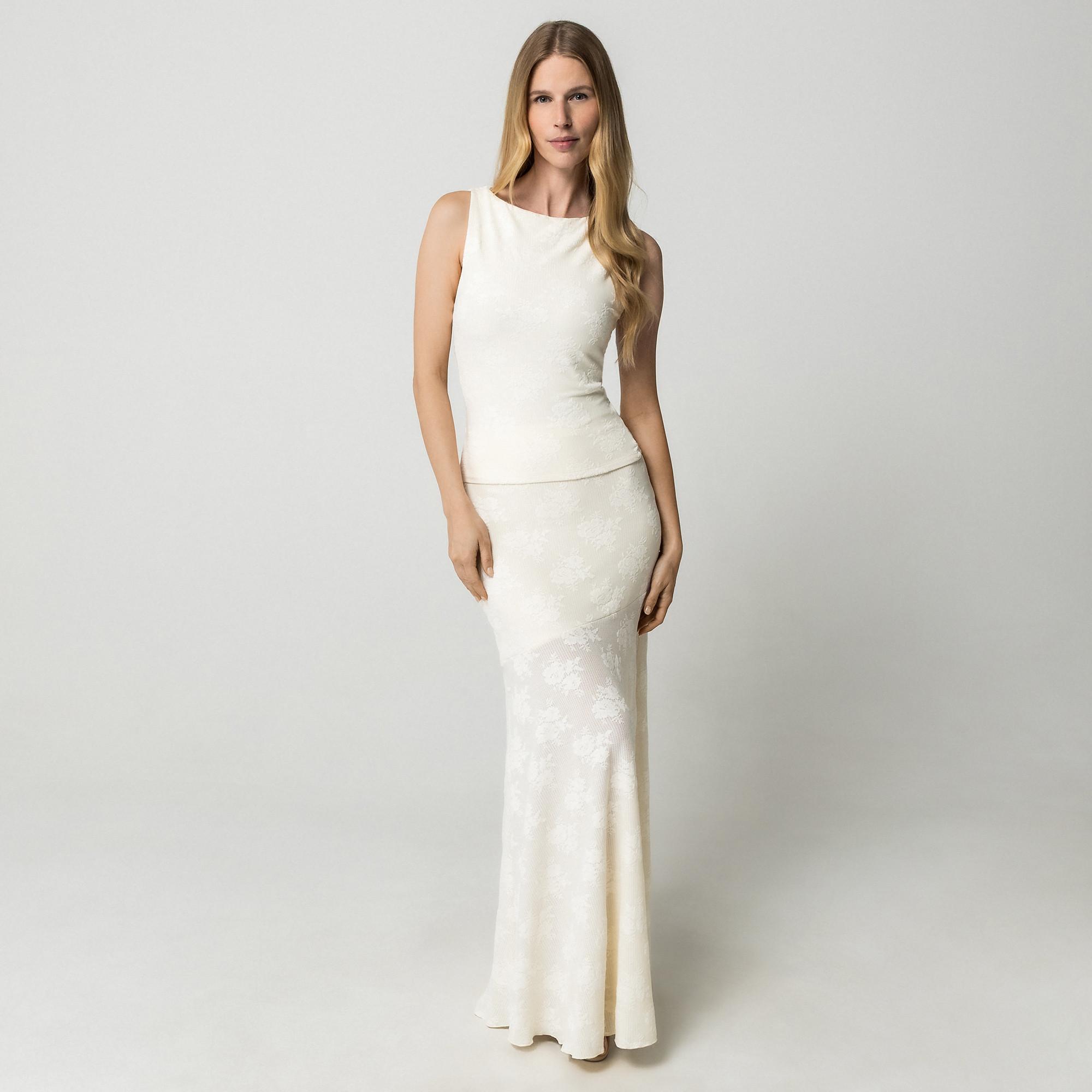 Ce débardeur sans manches présente une encolure bateau classique, offrant une silhouette intemporelle et élégante. Le haut est orné d'un motif floral subtil et intégral, ajoutant une touche de sophistication et de texture au vêtement. Sa coupe ajustée assure un look flatteur, ce qui en fait une pièce polyvalente pour diverses occasions.