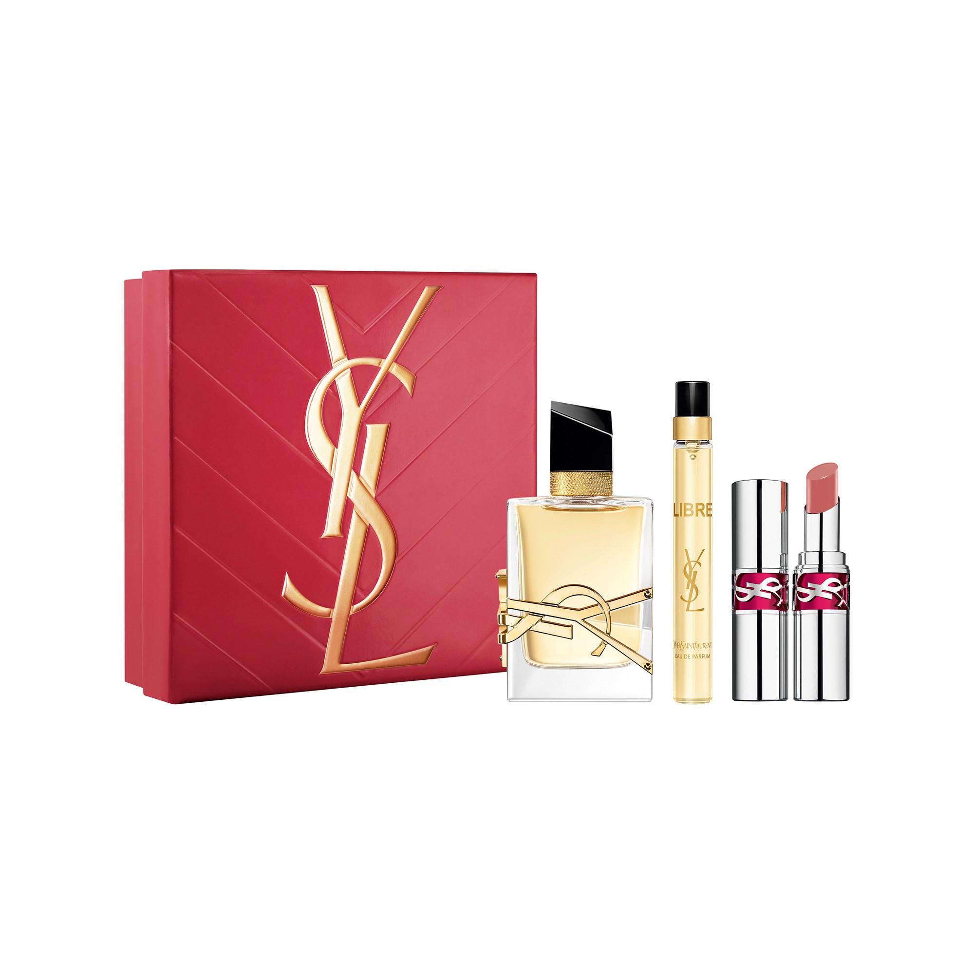 Ce coffret exclusif contient LIBRE Eau de Parfum 50 ml, un vaporisateur de voyage 10 ml et le rouge à lèvres Loveshine Candy Glaze, qui offre à la fois un parfum caractéristique et une touche de brillance éclatante.