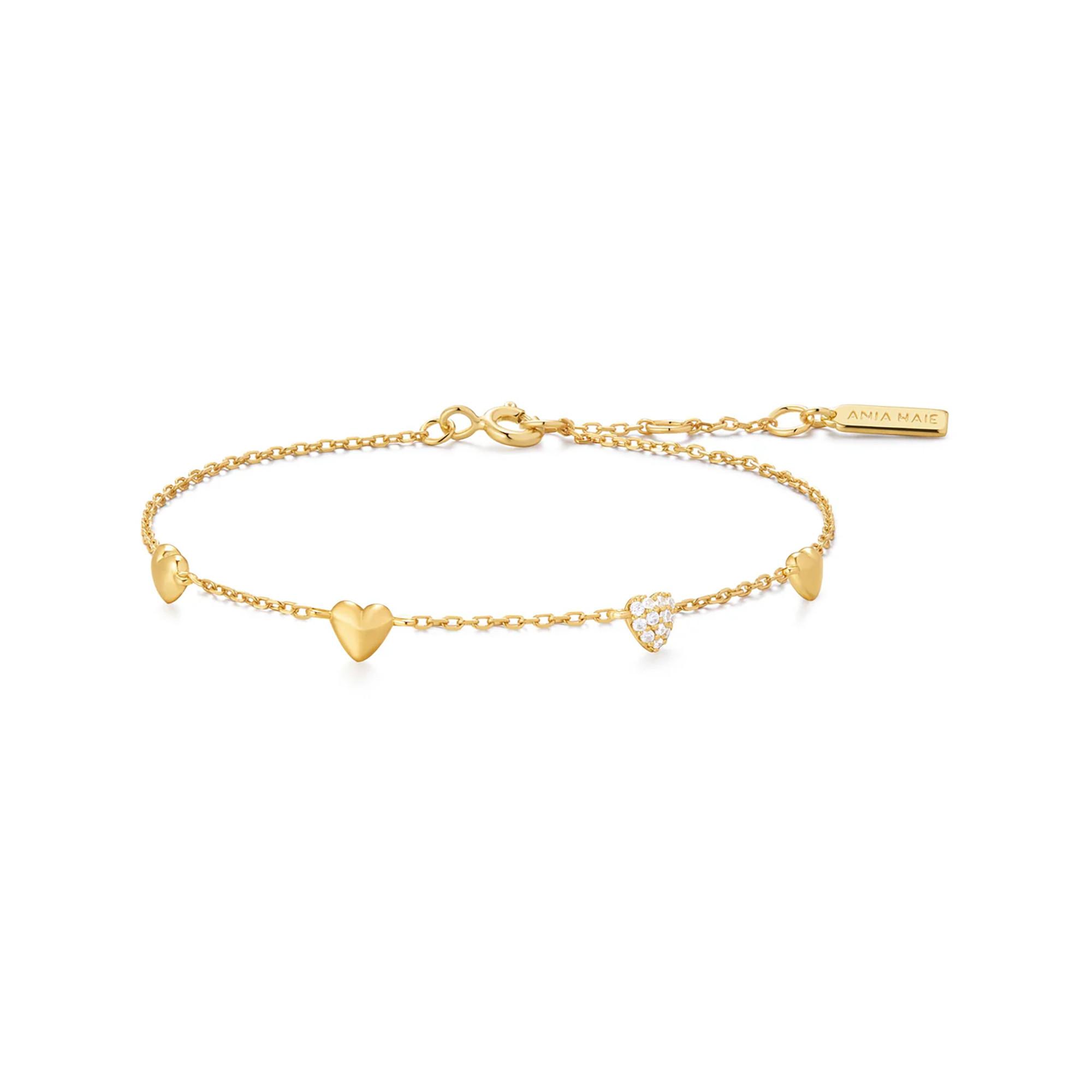 Pensé pour les âmes romantiques, ce bracelet séduit par une série de cœurs délicatement bombés, dont l’un est serti de zircon cubique en pavé tandis que les autres présentent une finition polie et lisse. Chaque cœur capte la lumière avec un éclat espiègle et transforme le quotidien en une célébration personnelle, parfait à superposer avec des chaînes à stations fines.