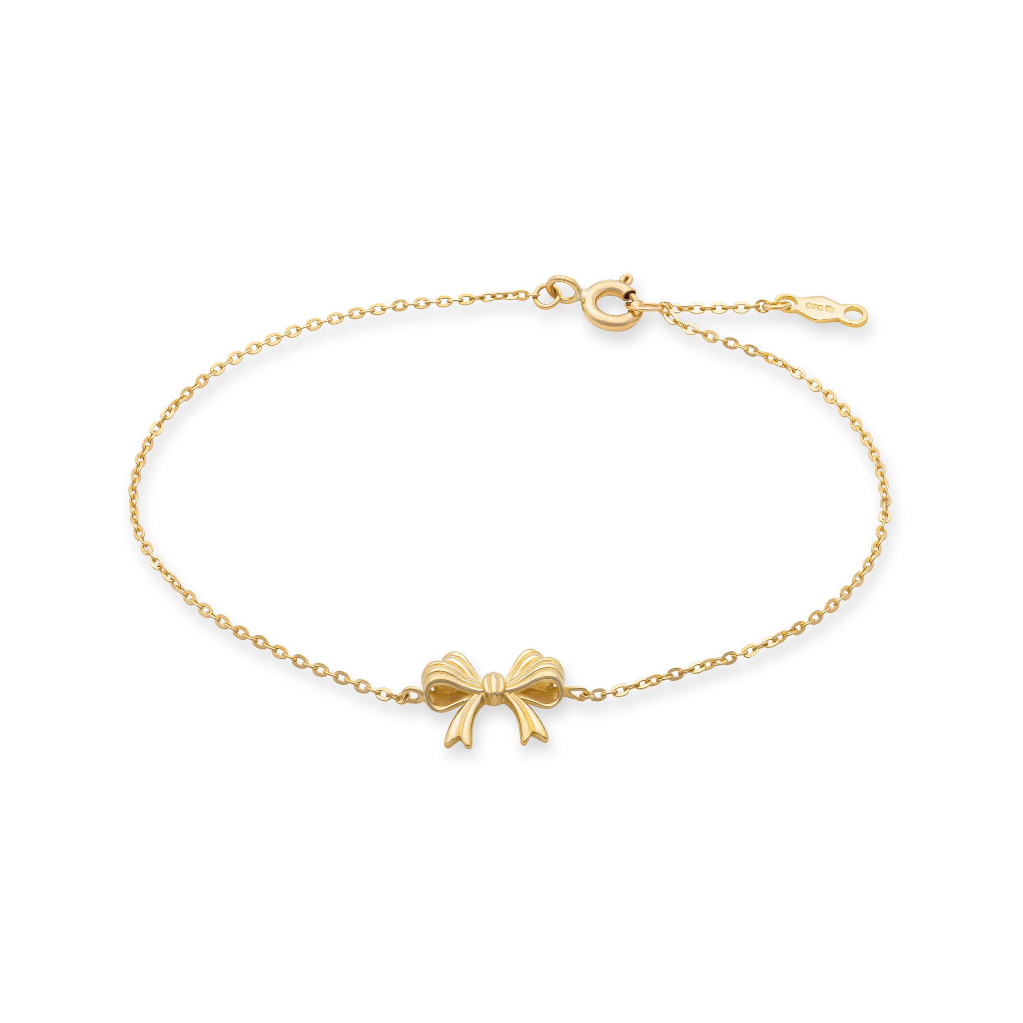Ce bracelet de la collection N° 9 est un bijou délicat et féminin en or jaune 9 carats, avec un nœud et un fermoir à ressort.