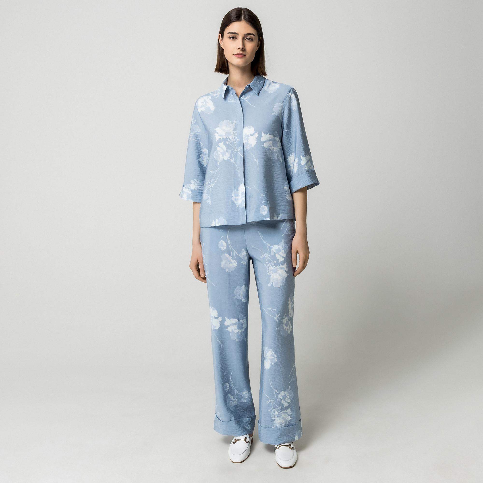 Ce pantalon arbore un délicat motif floral, offrant un look frais et élégant. Le design inclut une coupe confortable, le rendant adapté à diverses occasions.