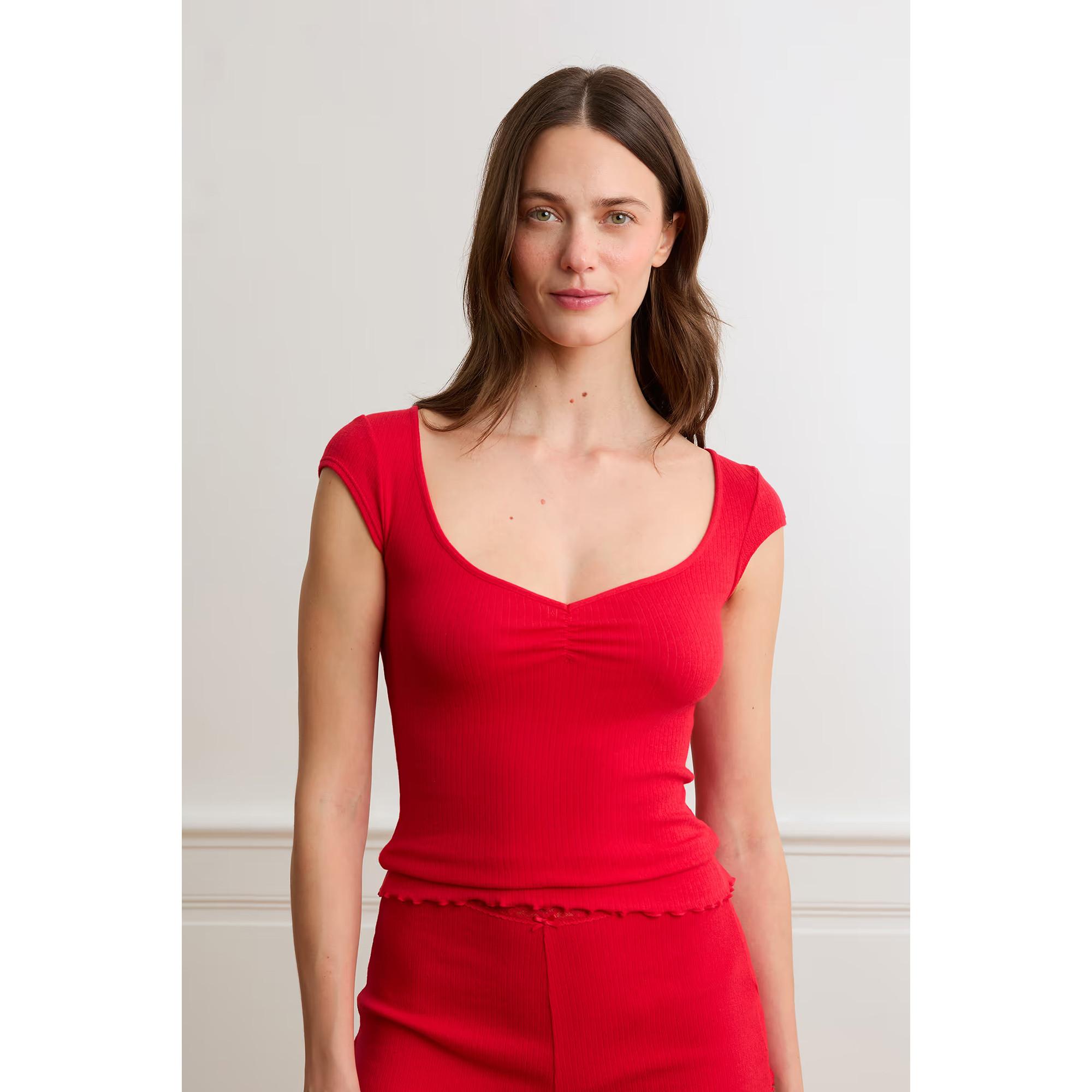 Etam Top Côtelé Manches Courtes Imprimé Cœurs