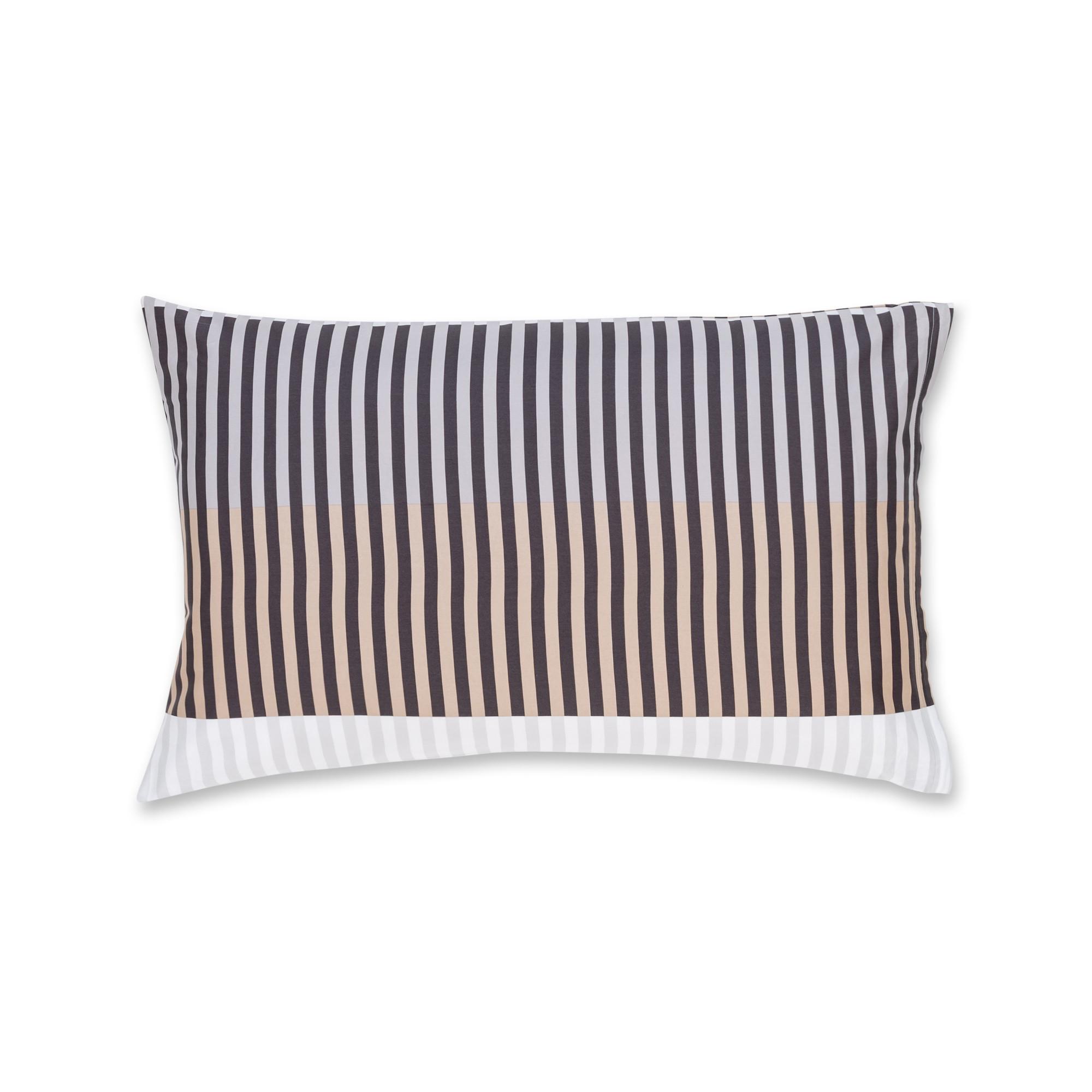 Cette taie d'oreiller présente un design rayé moderne, offrant un ajout élégant à toute collection de literie. Le motif combine différentes nuances pour créer une esthétique visuellement attrayante qui complète divers styles d'intérieur.