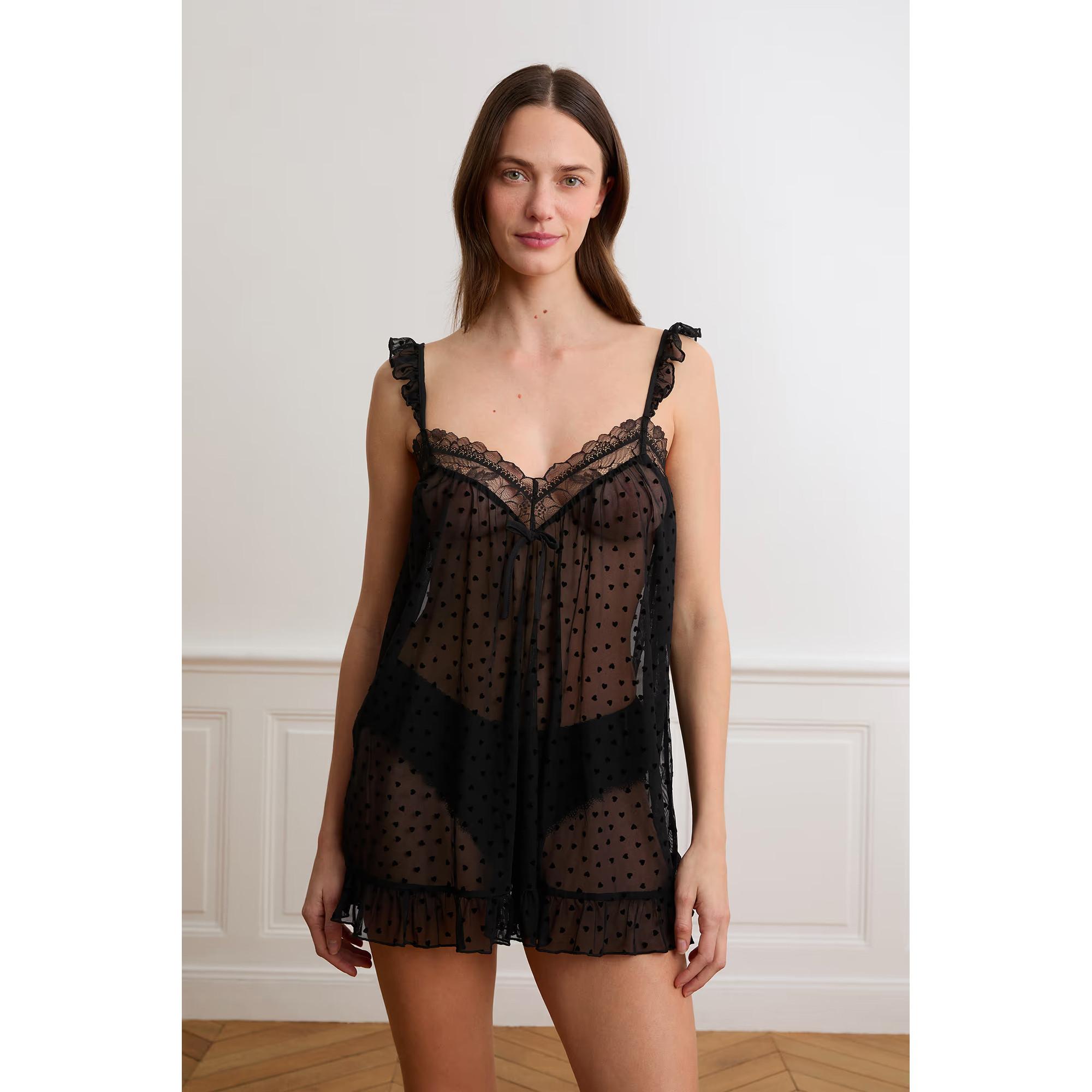 Etam Babydoll Transparent à Motif Cœur