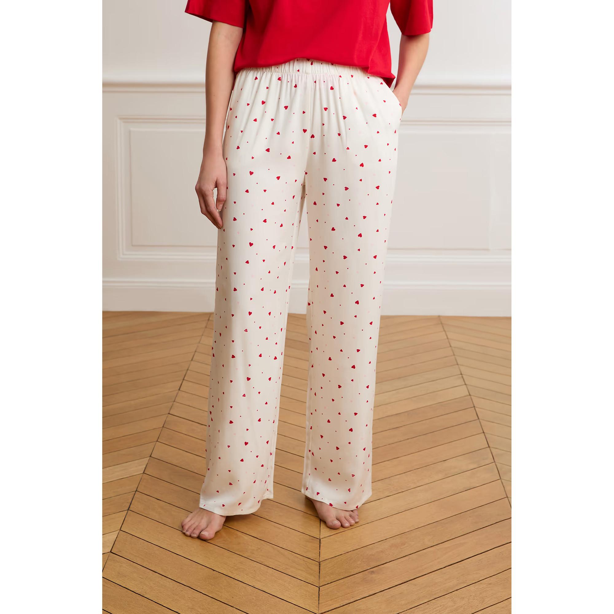 Ce pantalon de pyjama présente un charmant imprimé cœurs, ajoutant une touche ludique aux vêtements de détente. Le design comprend une taille élastique pour un ajustement confortable, ce qui le rend idéal pour se détendre à la maison.