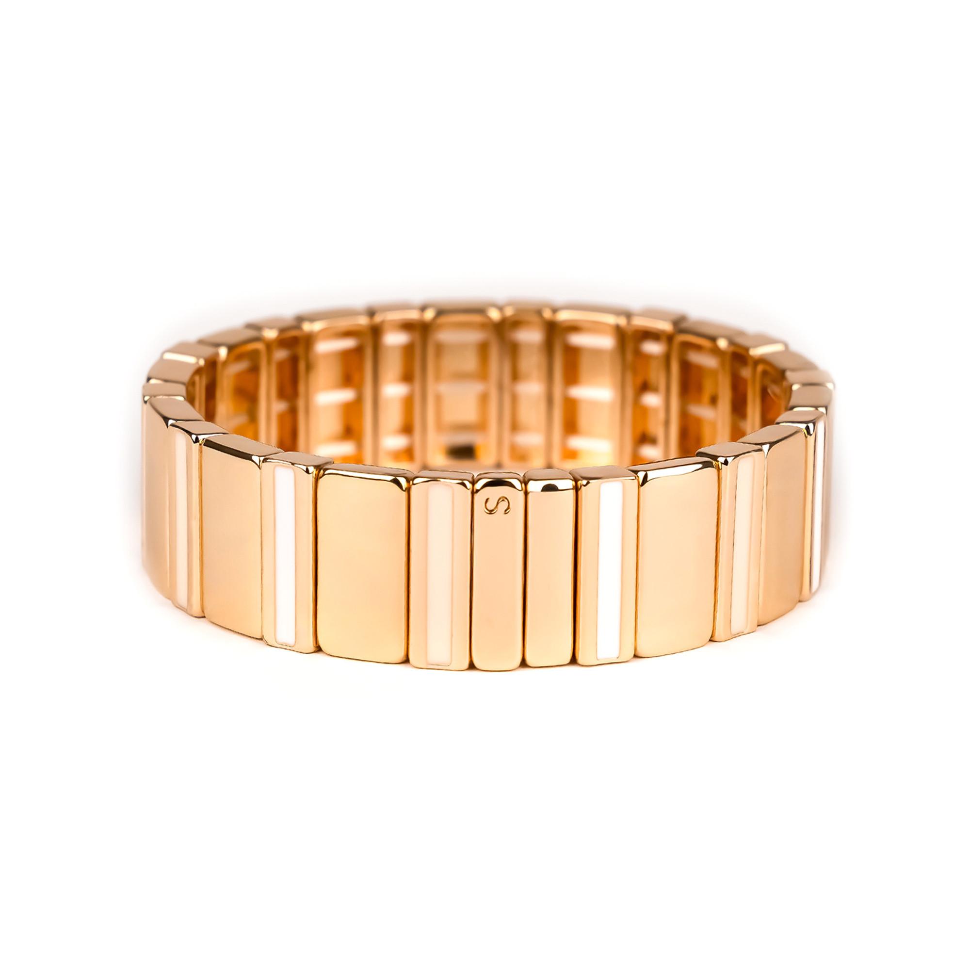 Ce bracelet de la collection PURE signé Simone à Bordeaux séduit par ses maillons rectangulaires dorés au style épuré et contemporain. Monté sur un élastique discret, il se porte avec la facilité d’un jonc tout en offrant un confort remarquable au quotidien. Élégant et intemporel, il se porte seul pour un look minimaliste ou en accumulation pour un style plus affirmé.