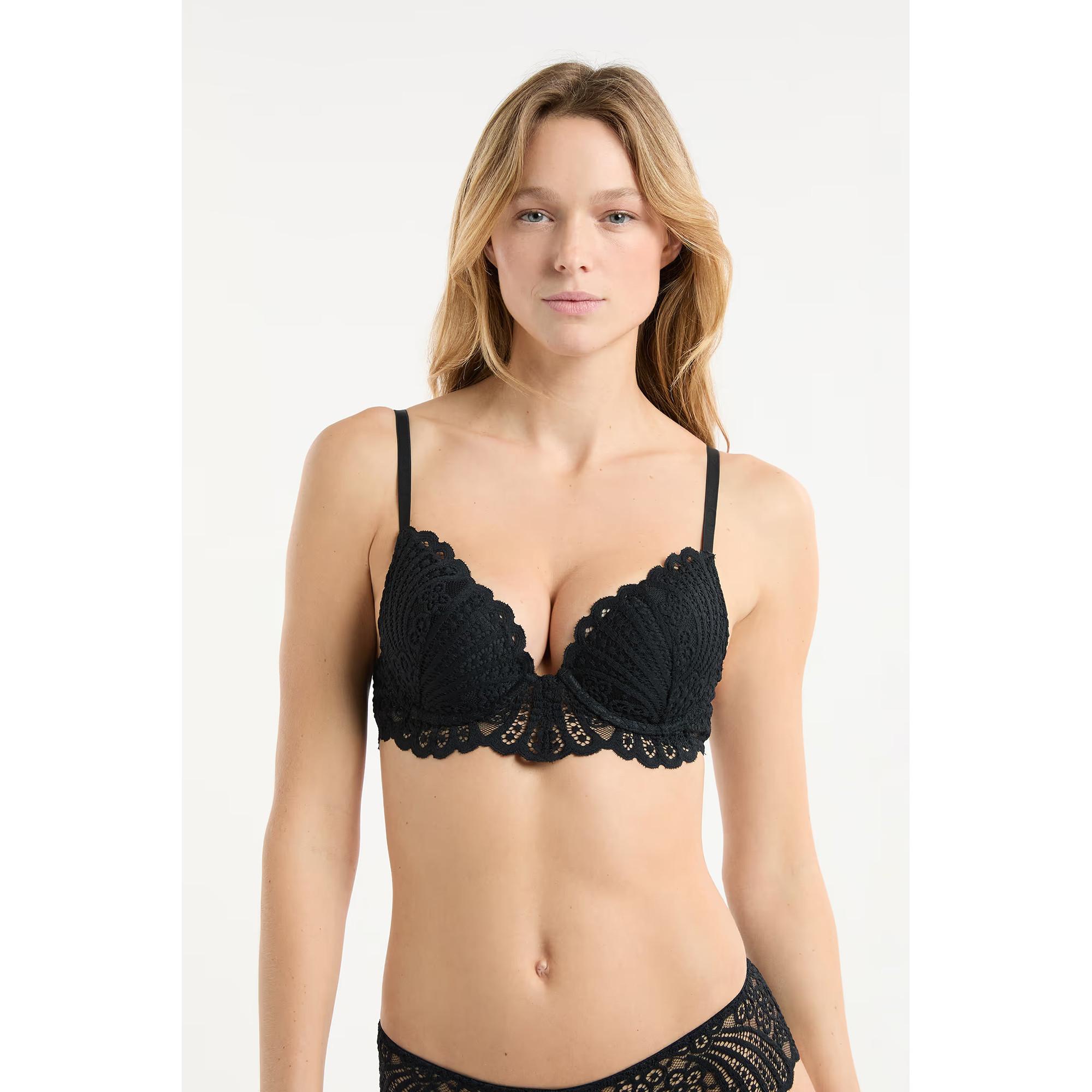 Ce soutien-gorge push-up présente de délicats détails en dentelle, offrant un mélange d'élégance et de maintien. Le design comprend des bretelles réglables et une fermeture à agrafes pour un ajustement personnalisé.