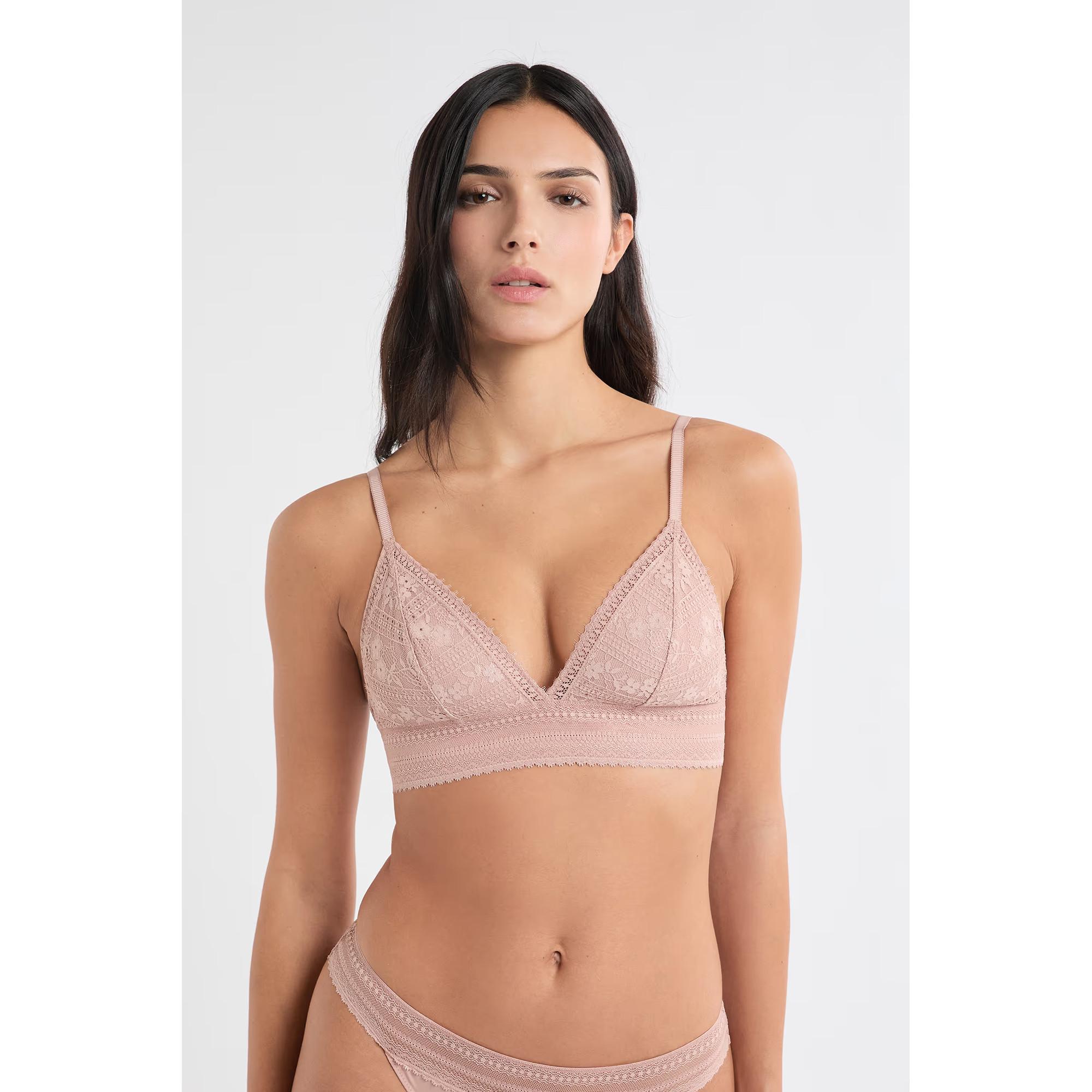 Ce soutien-gorge triangle offre un look délicat et féminin avec son design en dentelle complexe. Les bonnets souples offrent un léger maintien et un grand confort, ce qui le rend adapté à un usage quotidien ou à des occasions spéciales. Les bretelles réglables assurent un ajustement personnalisé.