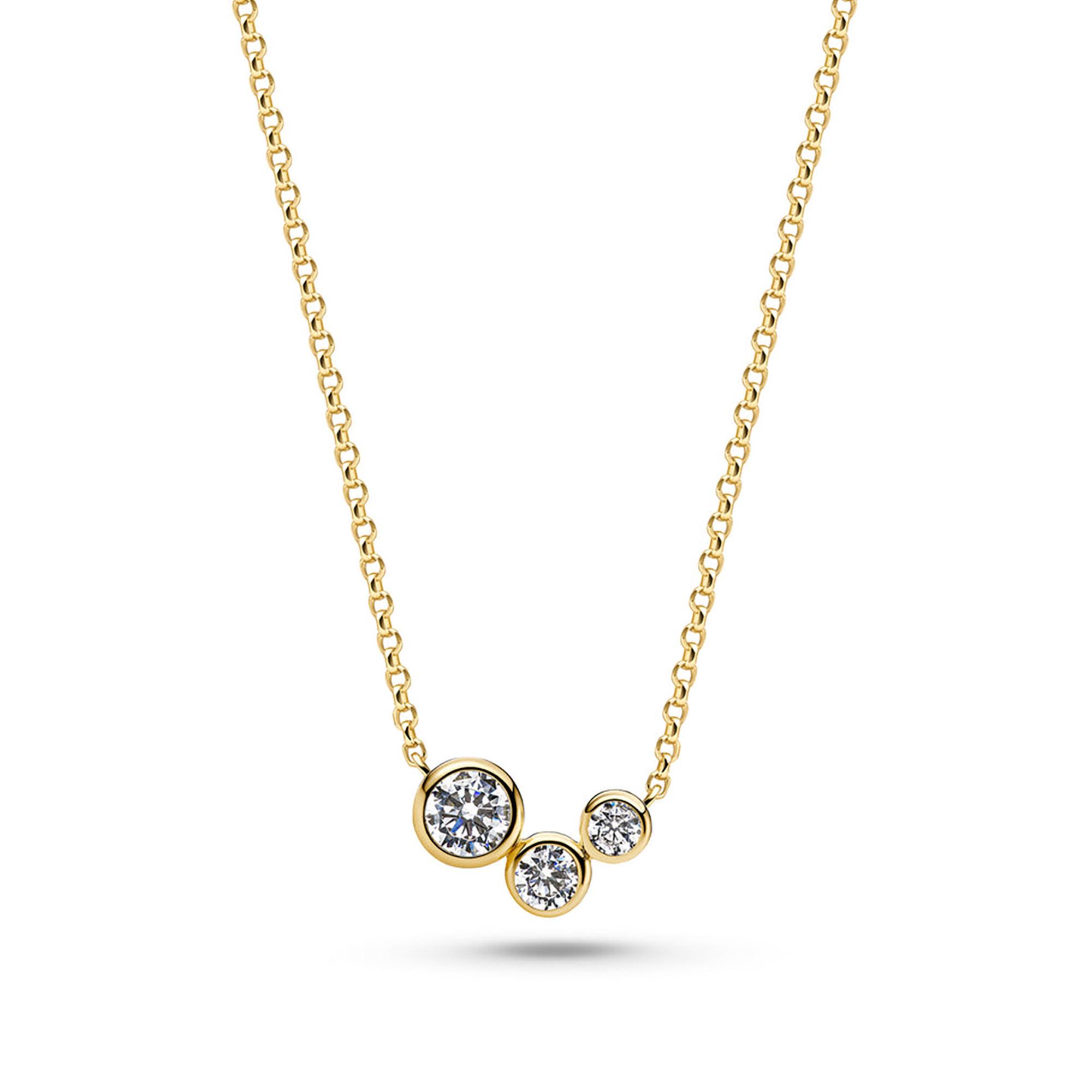 Ce collier élégant en argent sterling 925 avec placage or 18 carats séduit par sa surface polie et ses zirconias blancs facettés sertis à la main. Le placage de haute qualité confère au bijou une brillance chaleureuse et raffinée. Grâce à sa longueur de chaîne réglable, le collier s’adapte facilement et se porte aussi bien au quotidien que lors d’occasions spéciales.