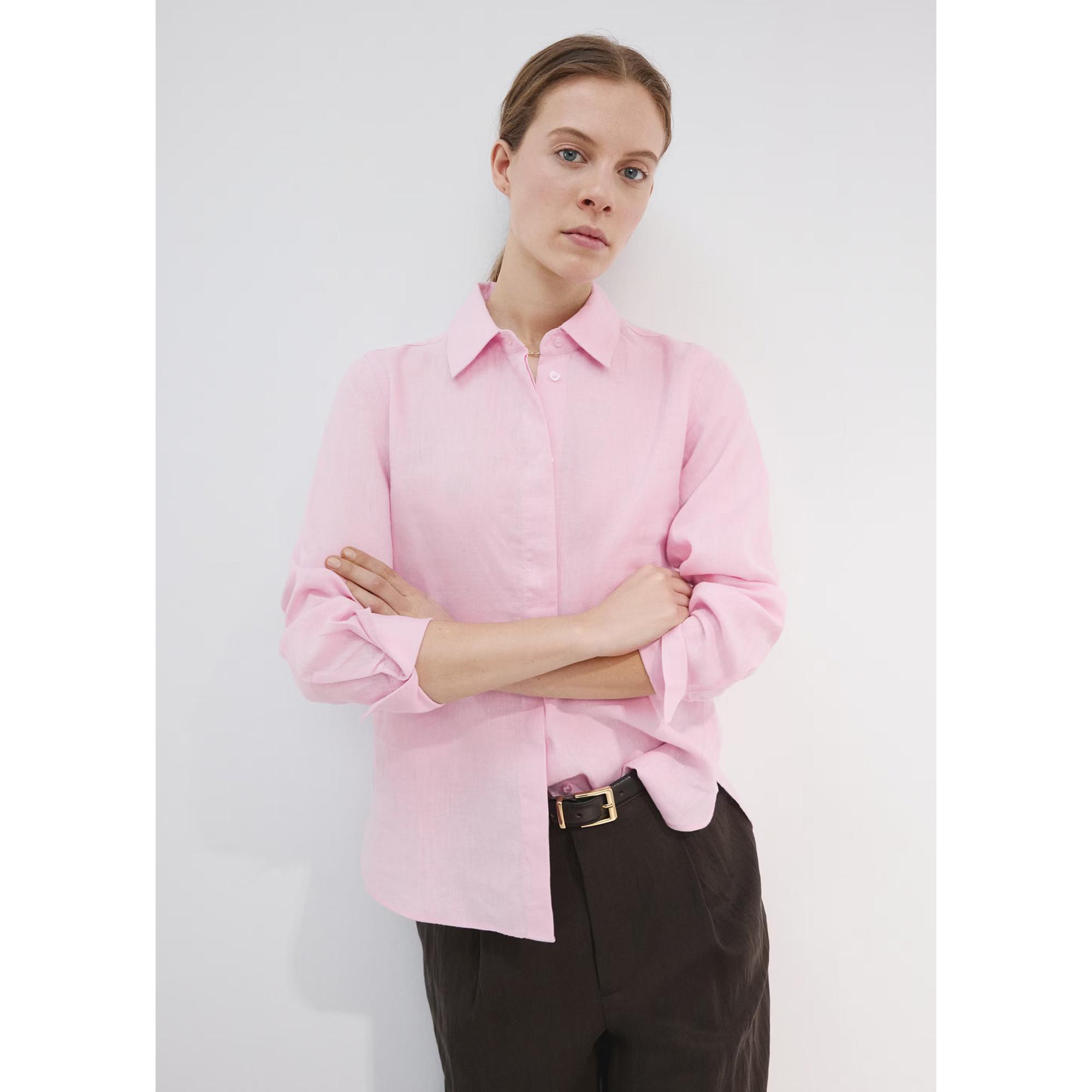 Ce chemisier à manches longues présente un design classique avec une patte de boutonnage sur toute la longueur et un col chemise. Les poignets sont dotés d'une fermeture à un seul bouton, offrant des options de style polyvalentes.