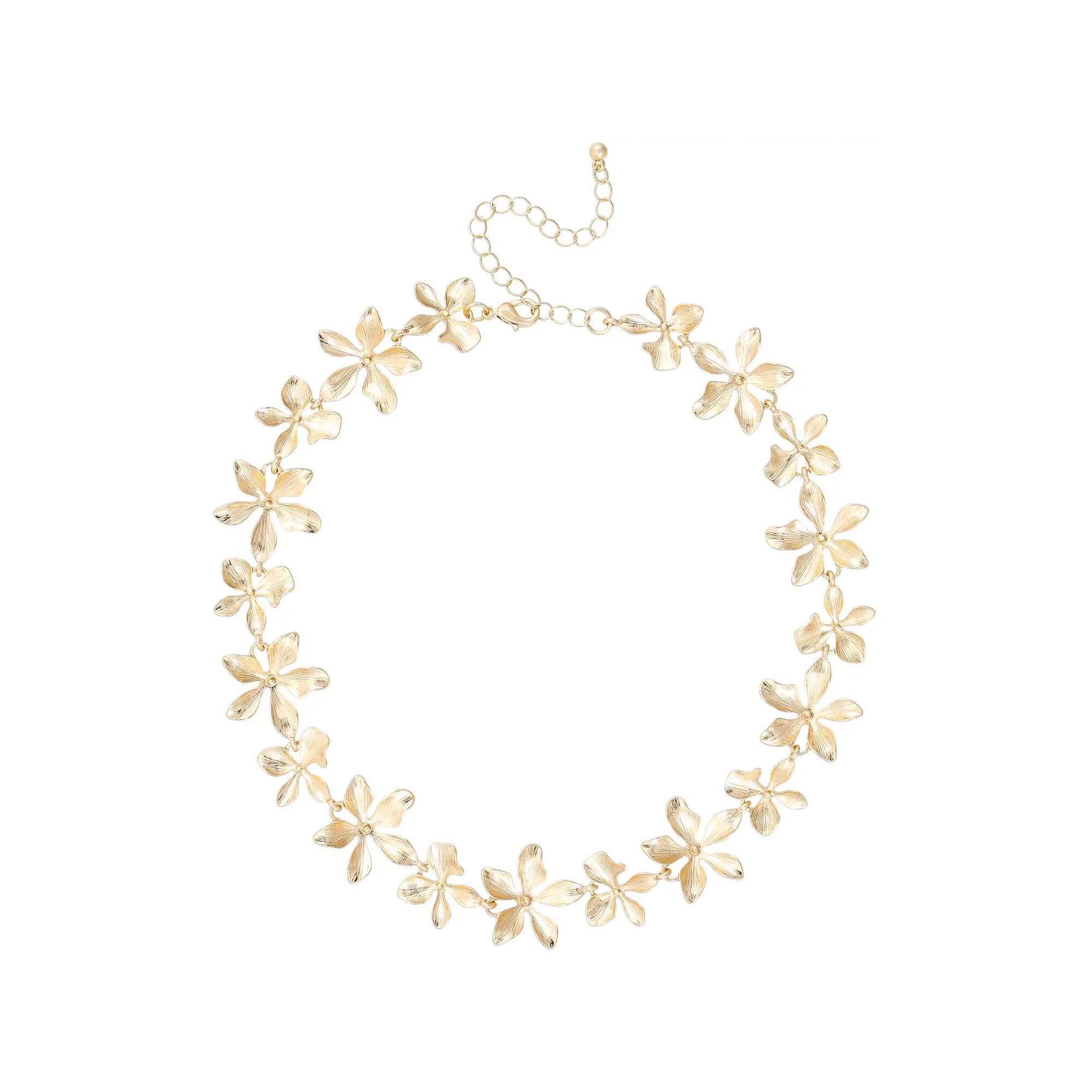 Le choker Golden Flower séduit par son éclat doré et ses fleurs délicatement reliées entre elles. Son design fin et floral apporte une touche féminine et élégante au cou. Grâce à la chaîne d’extension, la longueur s’ajuste facilement pour un porté personnalisé.