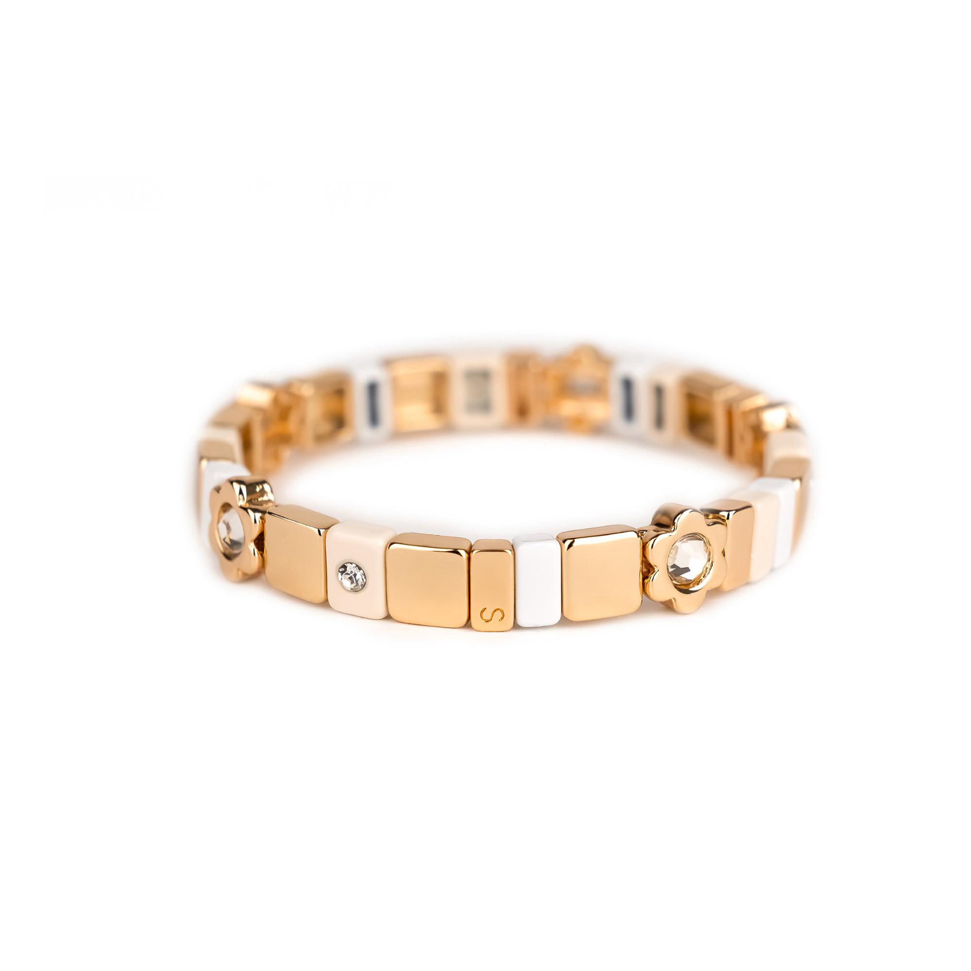 Léger soleil et atmosphère paisible : le bracelet Coachella Ethnique évoque un instant d’été pur et apaisant. En métal émaillé, il associe des perles rectangulaires colorées, des perles carrées dorées et des fleurs délicatement ornées d’un strass central. Son élastique unibrin garantit un confort optimal et une excellente durabilité. Tous les bijoux Simone à Bordeaux sont imaginés à Bordeaux puis fabriqués avec un savoir-faire maîtrisé.