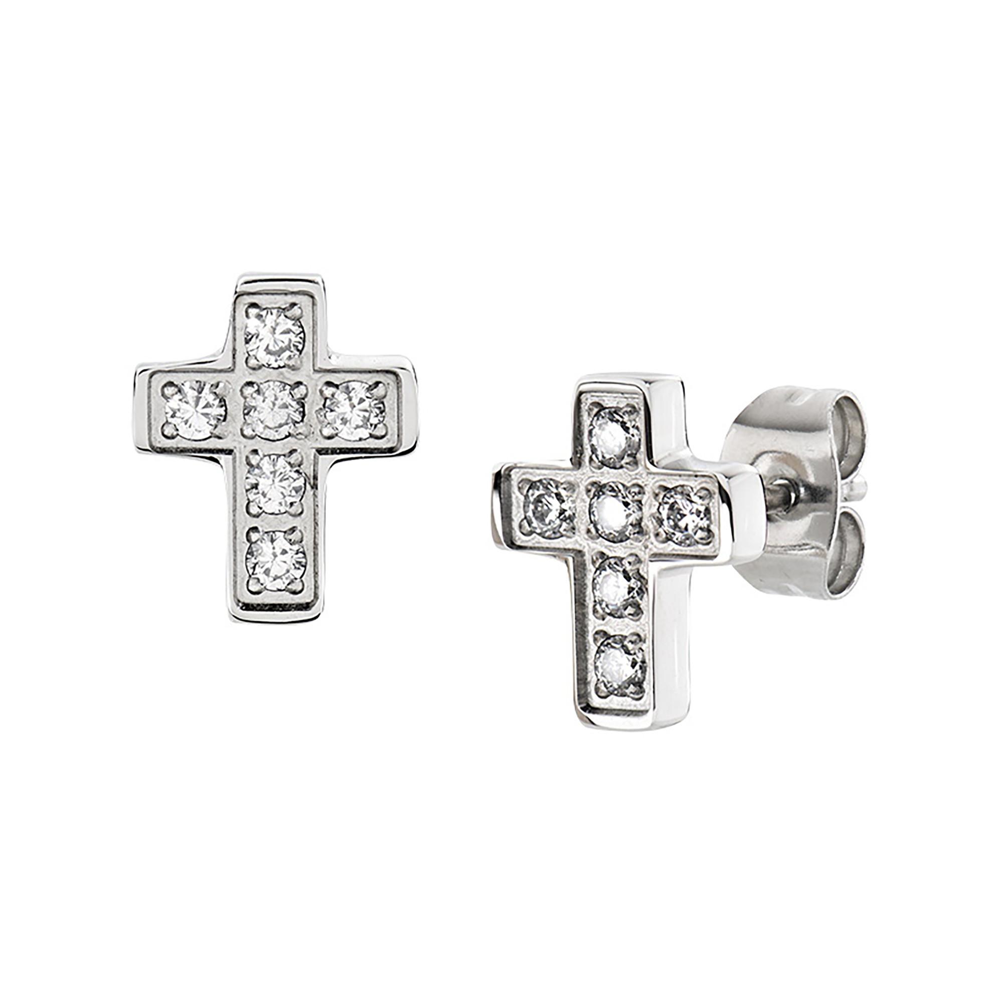 Ces boucles d’oreilles pour homme en acier inoxydable affichent un design en forme de croix au caractere affirmé. Les six zircones blancs apportent une touche d’élégance et de brillance discrète. Avec une hauteur de 11 mm et un fermoir clou avec papillon, elles offrent un maintien confortable et sécurisé au quotidien.