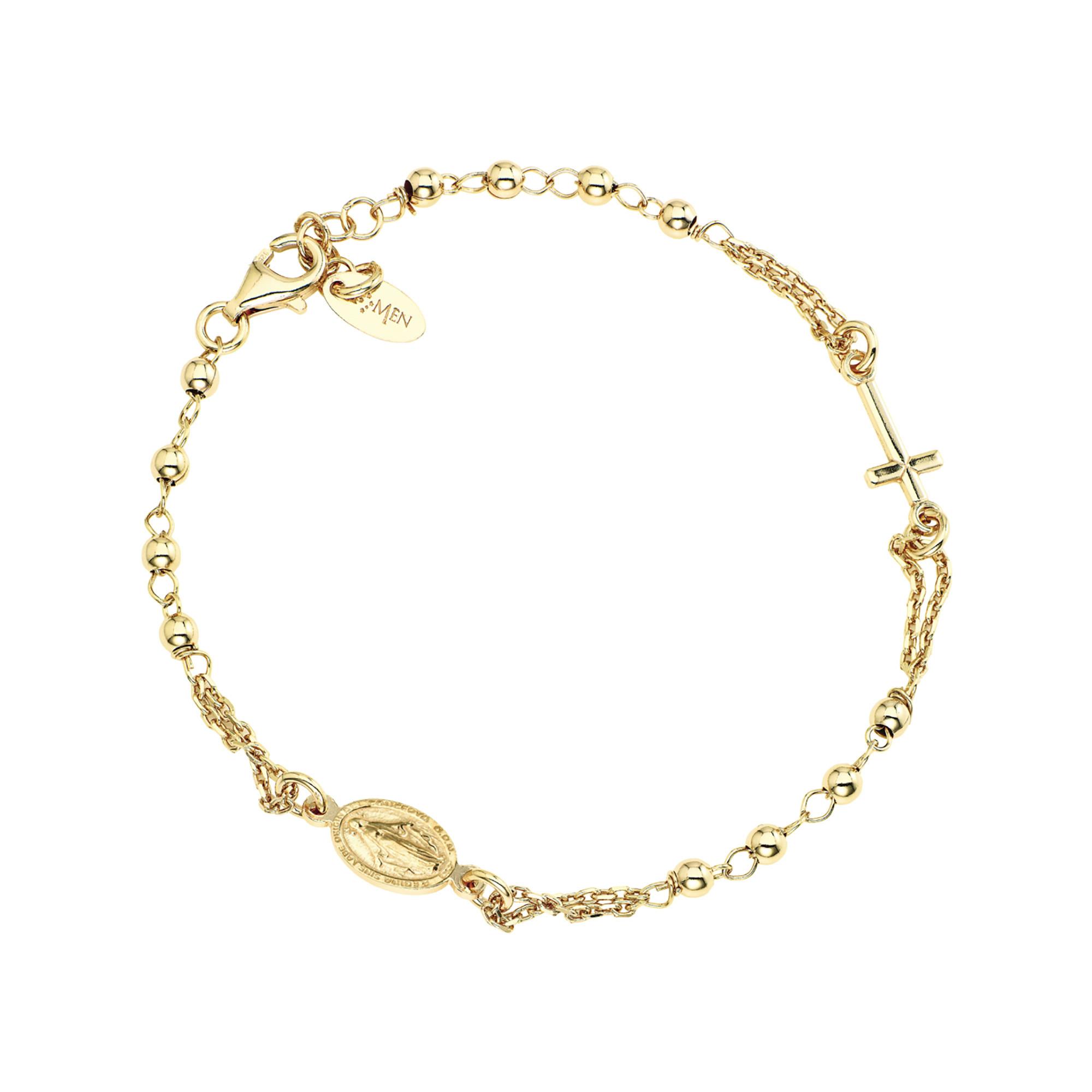 Ce bracelet chapelet en argent sterling plaqué or séduit par son élégance délicate et sa forte symbolique. Les perles fines de 2 mm sont sublimées par une croix et une médaille de la Vierge miraculeuse, créant un bijou à l’allure spirituelle et intemporelle. Ajustable de 18 à 20 cm, il s’adapte parfaitement au poignet pour un confort optimal.