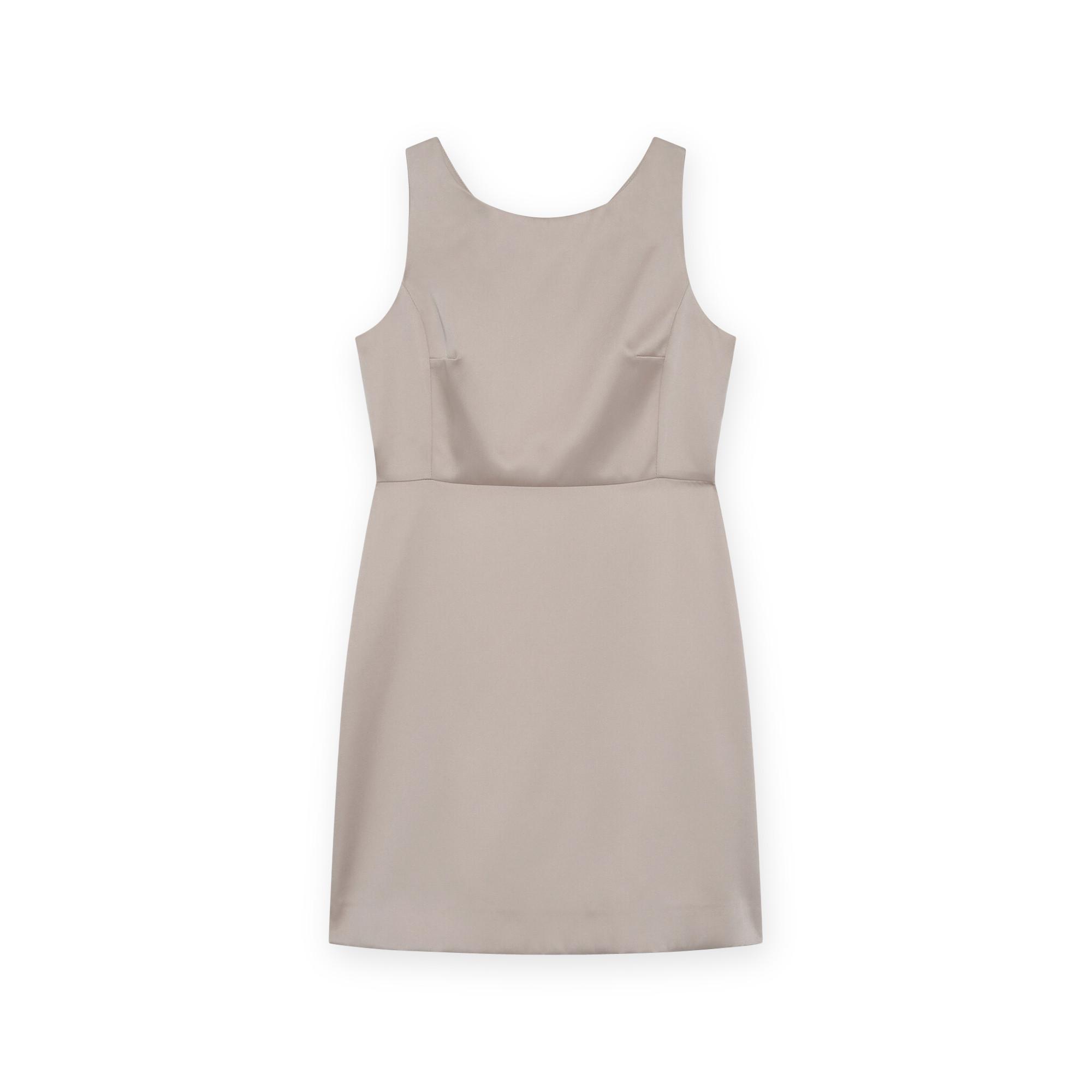 Cette robe courte sans manches offre une silhouette élégante et sophistiquée, parfaite pour diverses occasions. Son design présente un col rond classique à l'avant et un col en V à l'arrière, ajoutant une touche d'élégance. La robe est coupée pour offrir une coupe régulière flatteuse, ce qui en fait un ajout polyvalent à toute garde-robe.