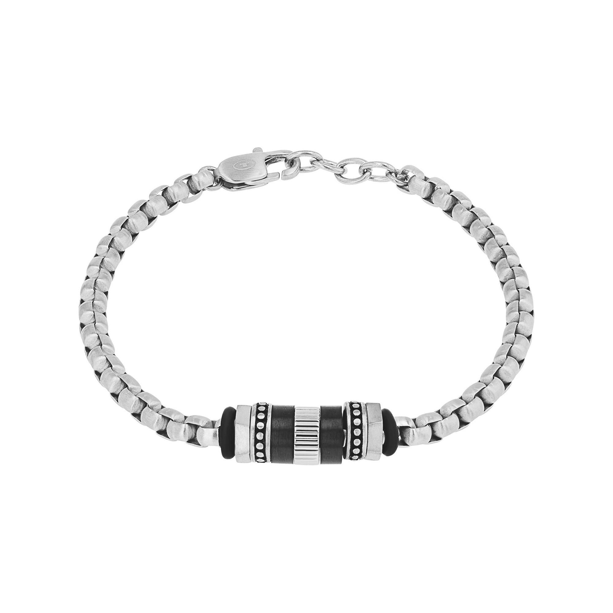 Ce bracelet au caractère affirmé de TOM TAILOR séduit par sa chaîne robuste au fini argenté mat et son élément décoratif contrasté. L’association de surfaces structurées et d’accents foncés souligne un style moderne et expressif. Grâce à la chaîne d’extension, la longueur s’adapte facilement au poignet. Un accessoire élégant pour le quotidien ou des occasions particulières.