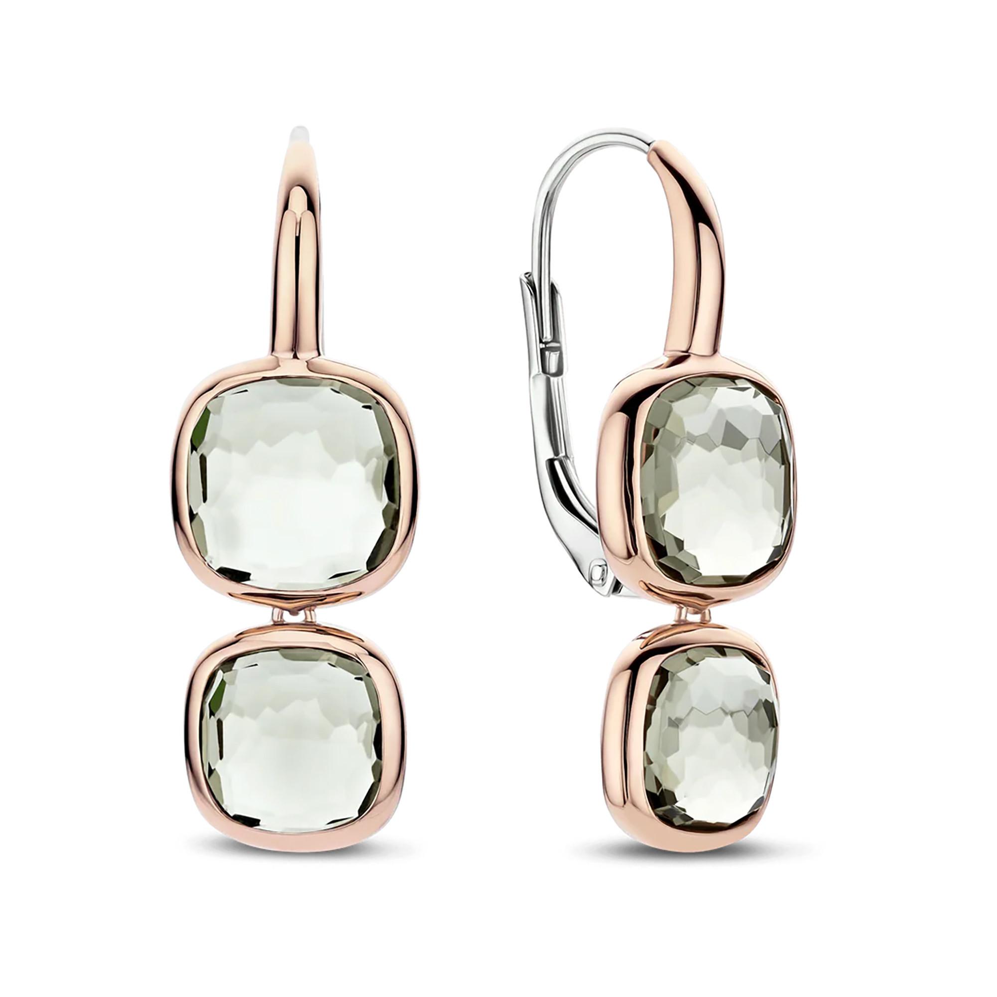La combinaison des tons verts doux avec la finition chaude en or rose offre un look moderne et élégant. La silhouette verticale permet aux boucles d’oreilles de tomber joliment le long de la mâchoire, se déplaçant légèrement avec vous et renforçant leur présence raffinée. Ces boucles Cushion sont parfaites portées seules comme pièce phare élégante, mais s’associent tout aussi facilement à d’autres bijoux en ton or rose ou en argent, convenant autant au style quotidien qu’aux looks estivaux.