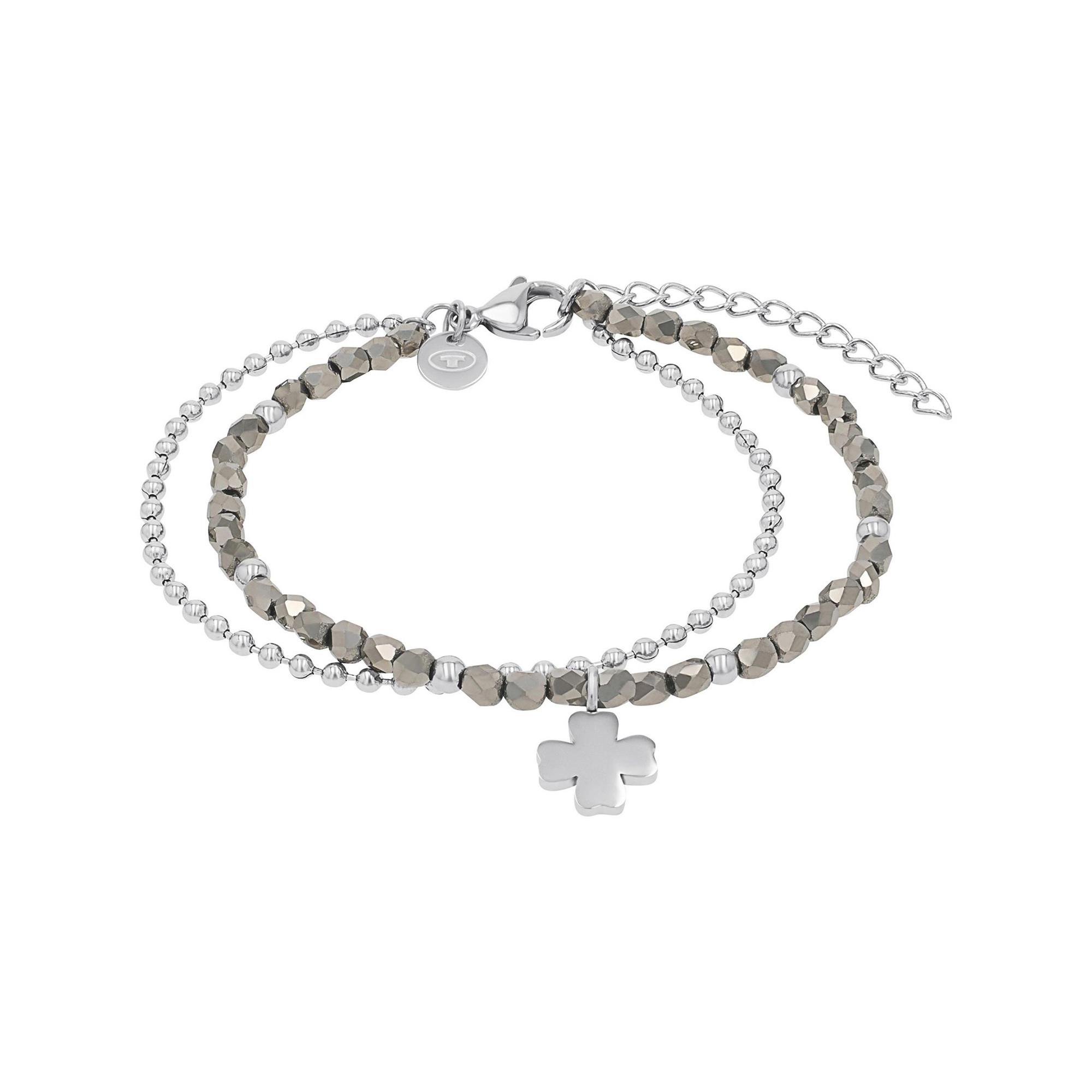 Ce bracelet élégant de TOM TAILOR associe deux rangs fins de perles à des éléments facettés dans des tons gris et argentés raffinés. Le pendentif discret en forme de trèfle apporte une touche intemporelle et harmonieuse au design. La longueur réglable assure un port confortable et personnalisé. Un bijou polyvalent, idéal au quotidien ou pour compléter une tenue élégante.