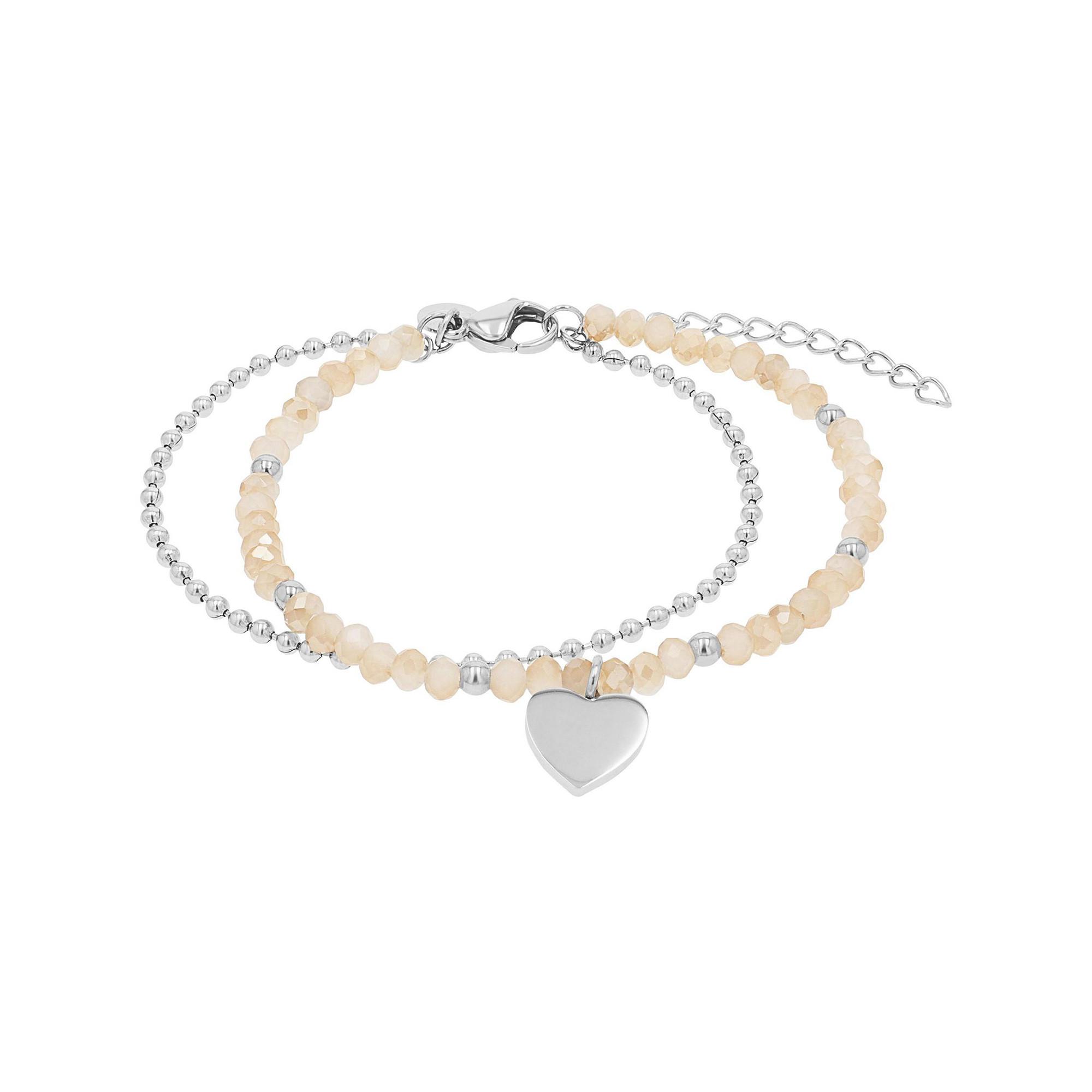 Ce bracelet raffiné de TOM TAILOR séduit par ses deux rangs de perles aux tons crème délicats, rehaussés d’accents argentés brillants. Le pendentif cœur discret apporte une touche tendre et intemporelle au design. La longueur réglable assure un confort optimal et un ajustement personnalisé. Un bijou élégant, idéal au quotidien ou pour sublimer une tenue avec subtilité.