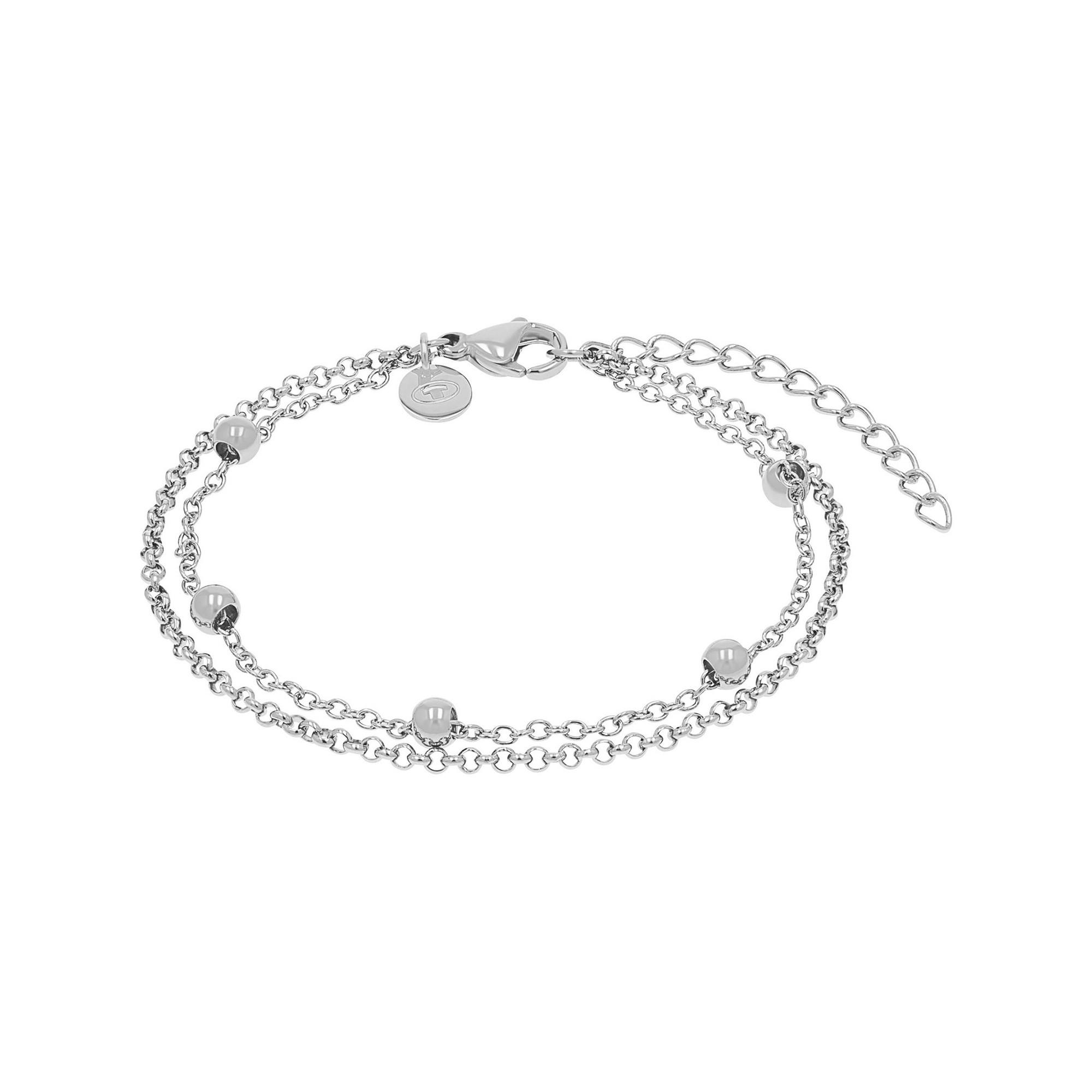Le bracelet TOM TAILOR 2100644 séduit par son design moderne à effet superposé et son élégance discrète. Deux chaînes fines argentées sont rehaussées de petits éléments sphériques qui apportent une touche féminine et raffinée. La longueur réglable assure un confort optimal et un ajustement personnalisé. Un bijou polyvalent, idéal au quotidien comme pour des occasions plus habillées.