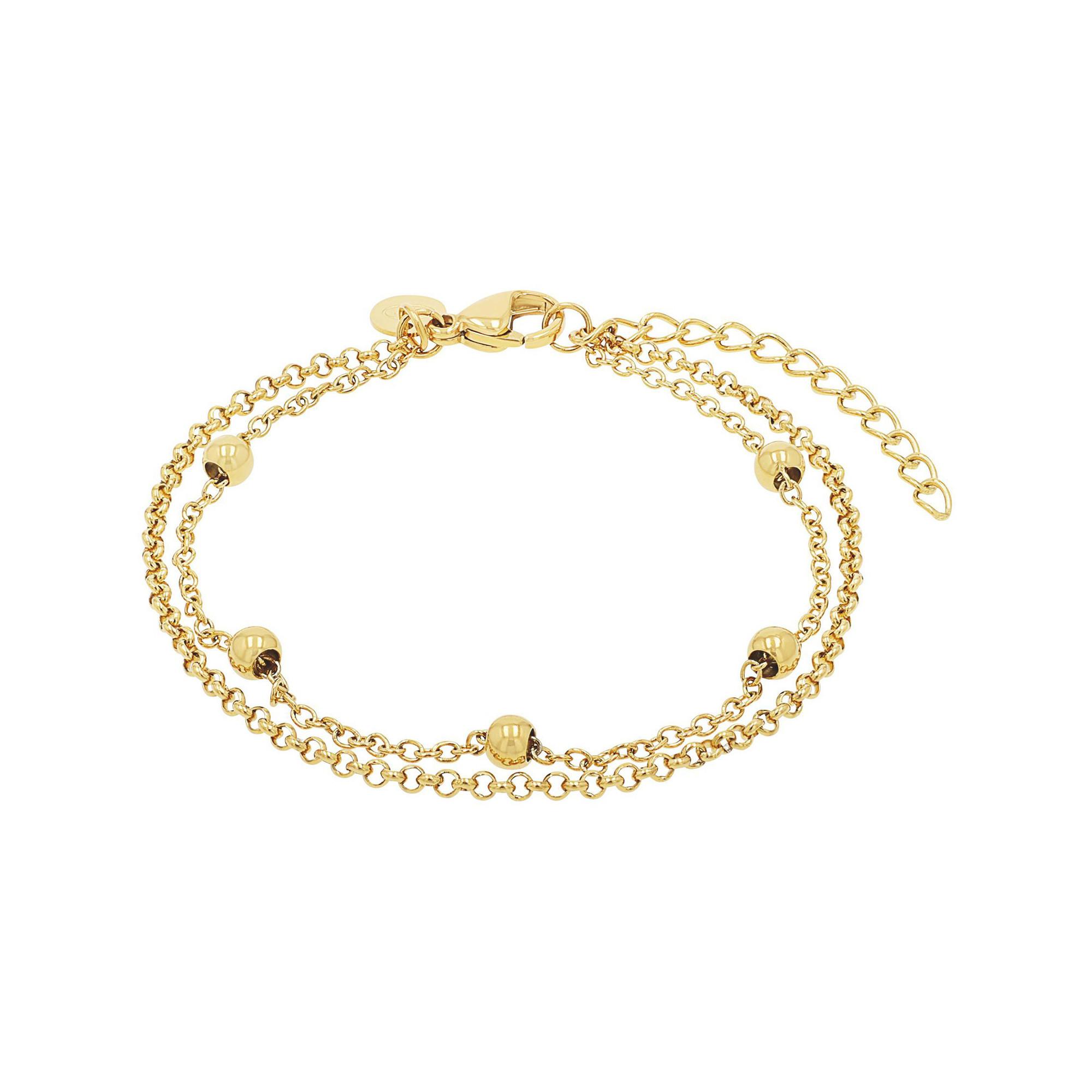 Ce bracelet élégant de TOM TAILOR séduit par ses deux chaînes fines à la finition dorée chaleureuse, rehaussées de petites perles brillantes. Son design minimaliste apporte une touche de modernité et se combine facilement avec différents styles. La longueur réglable assure un ajustement confortable au poignet. Un bijou intemporel, idéal au quotidien ou pour compléter une tenue avec subtilité.