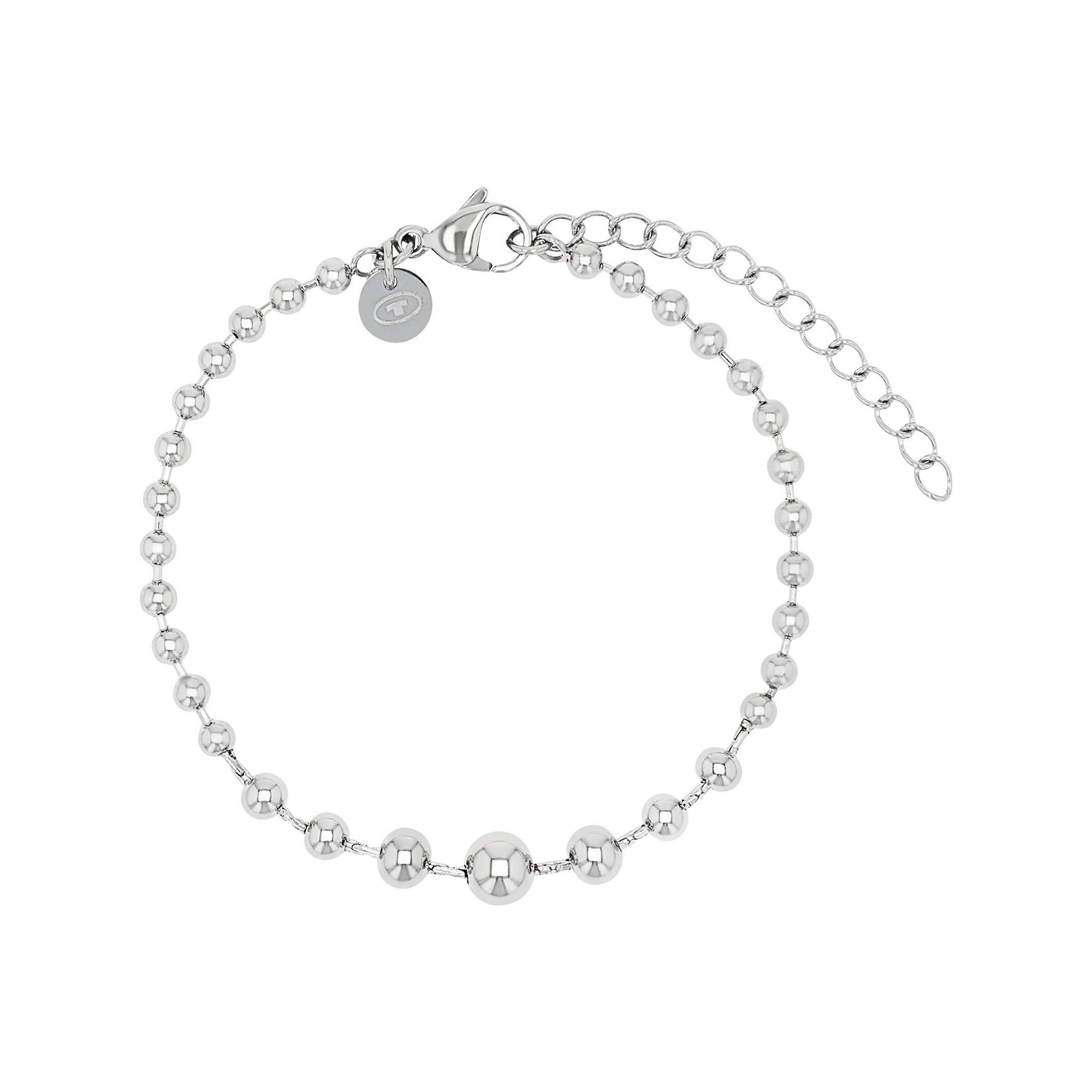 Le bracelet TOM TAILOR 2101358 séduit par son design délicat et son élégance intemporelle. Des perles sphériques en acier inoxydable brillant, de tailles variées, s enchaînent harmonieusement et confèrent au bijou une allure féminine et moderne. La chaînette d extension permet un ajustement personnalisé et un port confortable. Un accessoire polyvalent, idéal au quotidien comme pour des occasions spéciales.