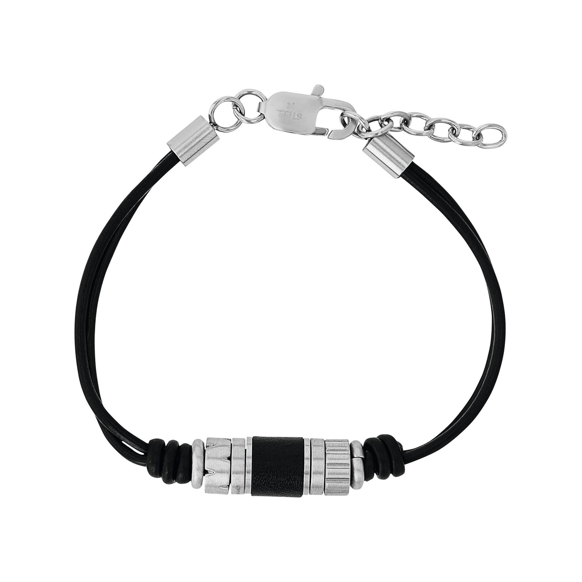 Le bracelet TOM TAILOR 2101412 séduit par son mélange de matériaux et son style masculin affirmé. Des cordons en cuir noir sont associés à un élément central en acier inoxydable à la surface structurée, apportant une touche moderne et robuste. Le fermoir mousqueton avec chaînette d extension garantit un maintien sûr et un port confortable. Un accessoire polyvalent, idéal pour compléter des tenues décontractées et contemporaines.