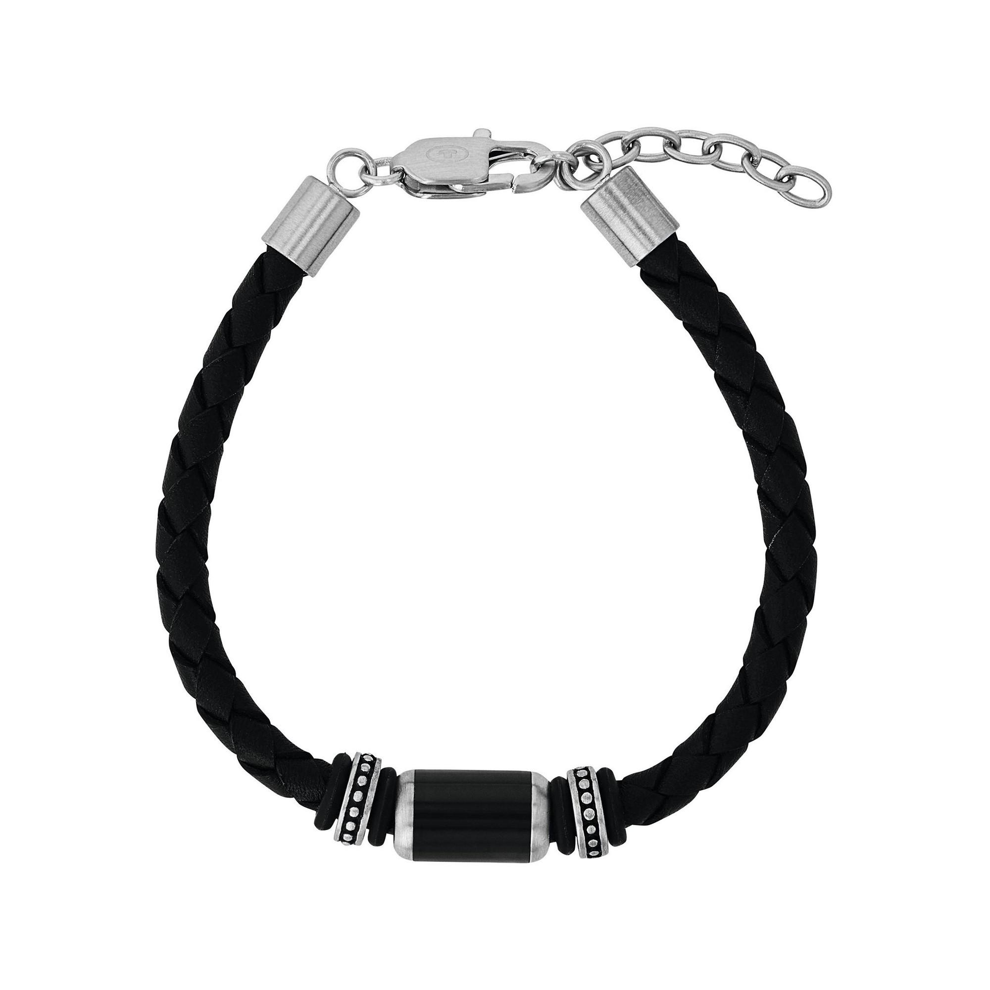 - Bracelet en cuir tressé avec élément central en acier inoxydable