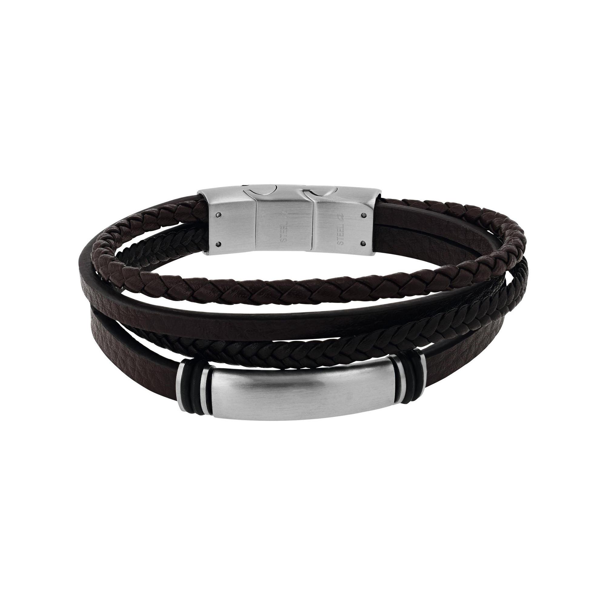 - Bracelet multi‑rangs en cuir avec élément central en acier inoxydable