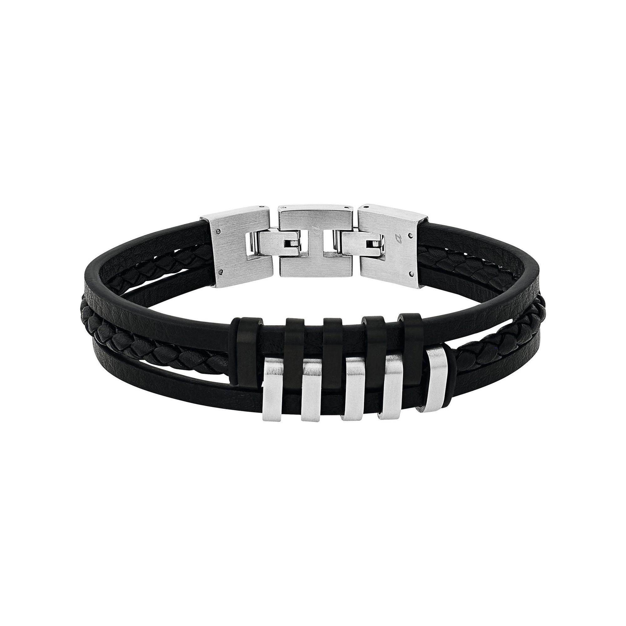 Le bracelet TOM TAILOR 2101418 séduit par son design affirmé et son mélange harmonieux de cuir et d acier inoxydable. Plusieurs lanières en cuir noir, lisses et tressées, sont maintenues par des éléments en acier brossé qui apportent une touche moderne et masculine. Le fermoir robuste garantit un maintien sûr et un port confortable au quotidien. Un accessoire polyvalent, idéal pour compléter des tenues casual et urbaines.