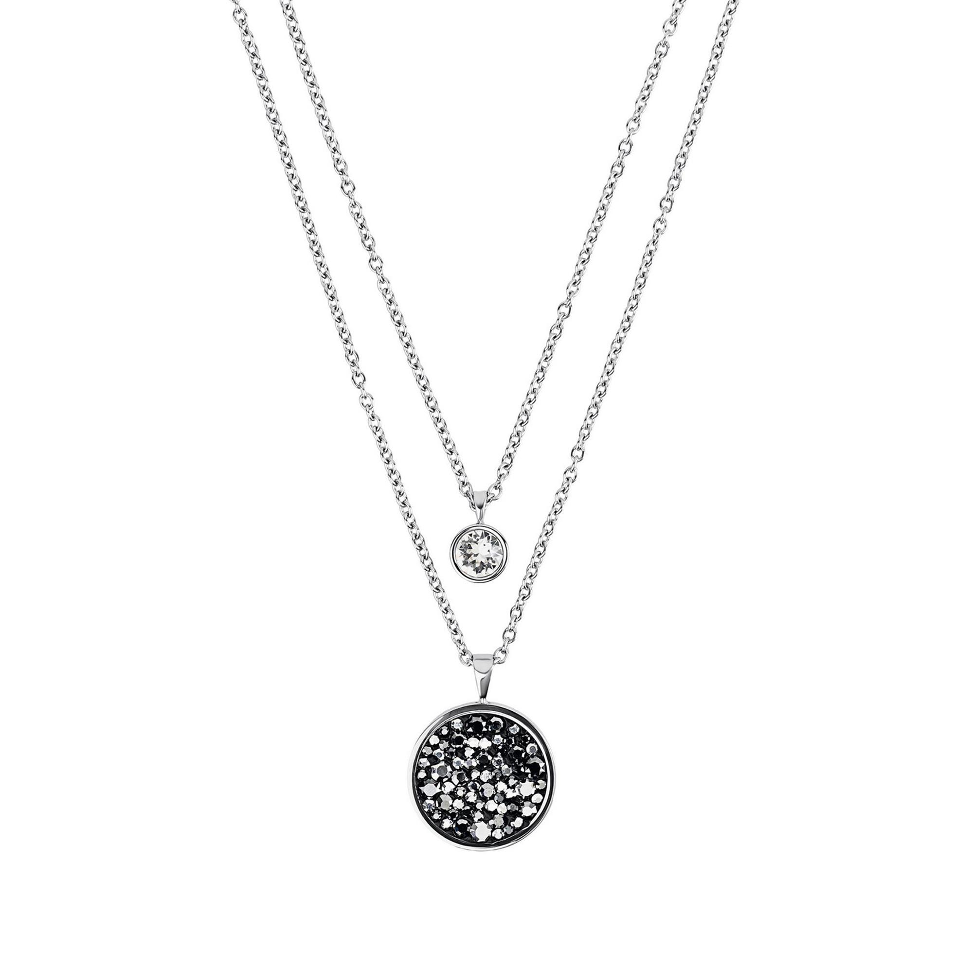 Ce collier élégant de TOM TAILOR séduit par son design en superposition composé de deux chaînes fines à la finition argentée. Les deux pendentifs ronds de tailles différentes apportent de subtils éclats, le plus grand étant orné de pierres scintillantes noires et argentées. L’association harmonieuse de formes épurées et de brillance confère au bijou une allure moderne et raffinée. Parfait au quotidien ou pour sublimer une tenue avec élégance.