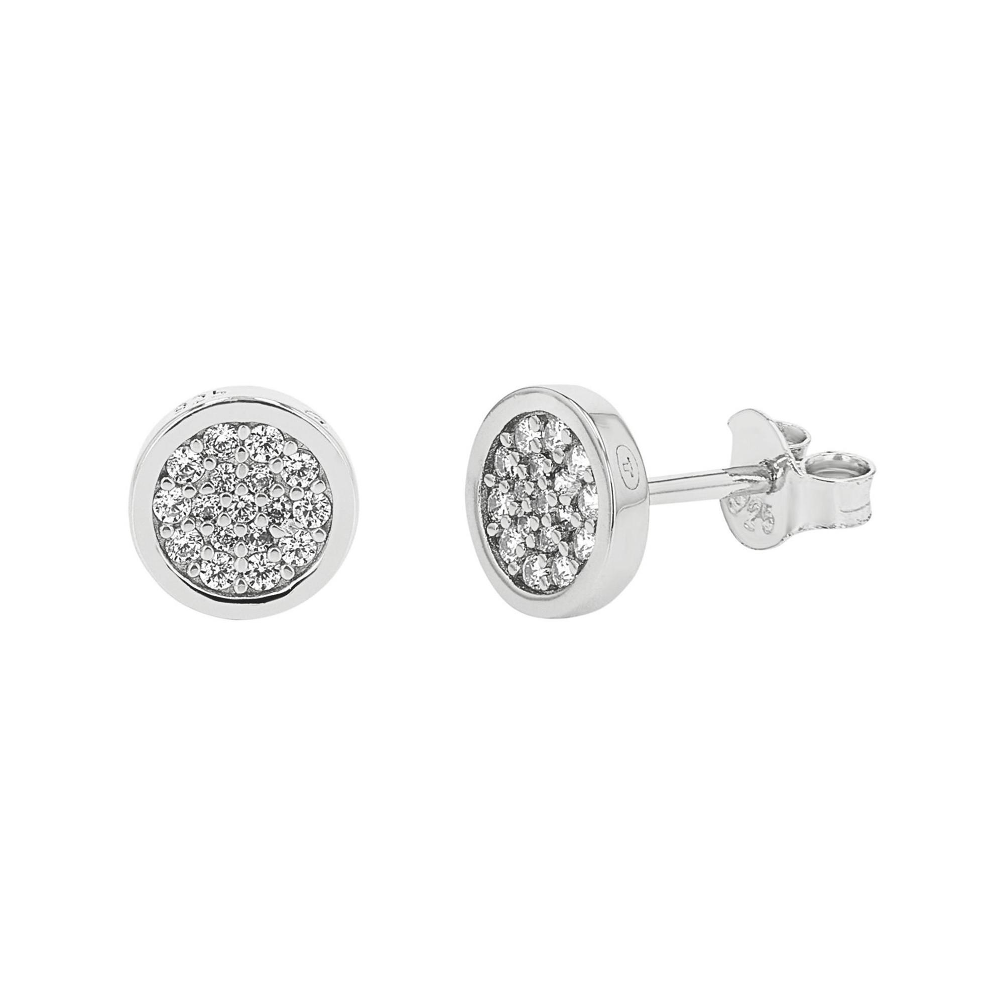 - Boucles d’oreilles argentées avec pierres serties style pavé