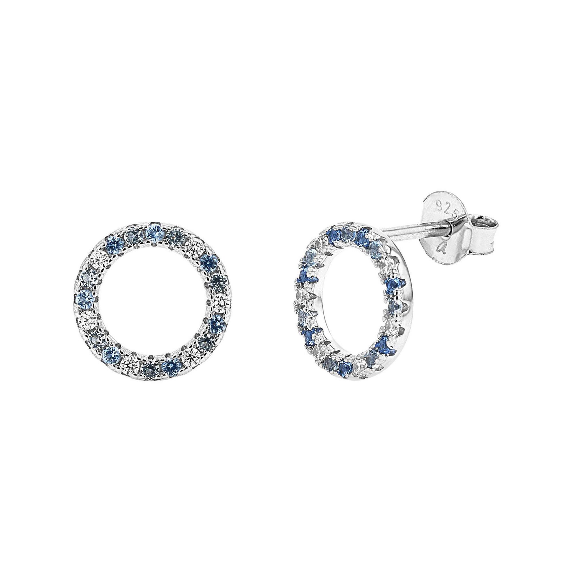 - Design circulaire avec zircones blanches et bleues