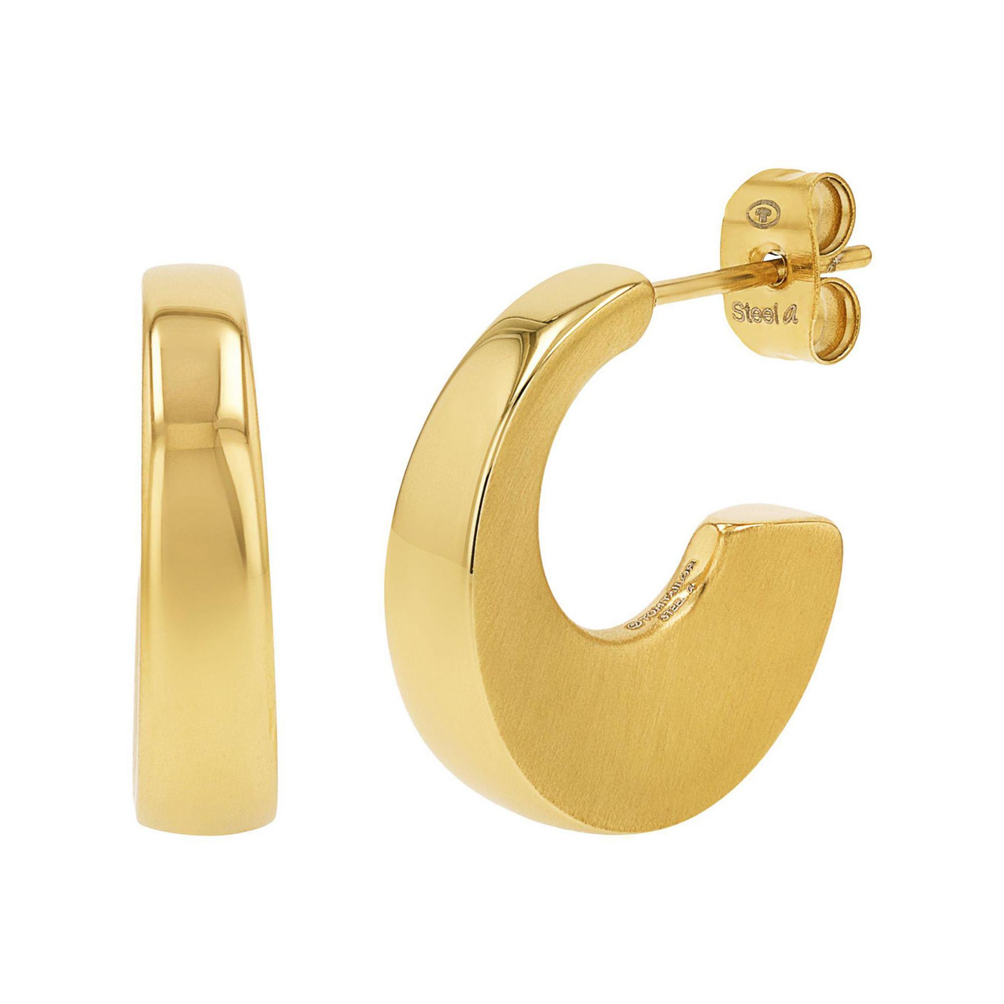Ces créoles TOM TAILOR séduisent par leur design épuré et leur élégante finition dorée. La forme large et légèrement aplatie en acier inoxydable confère au bijou une allure moderne et raffinée. La surface lisse et le fermoir sûr garantissent un port confortable au quotidien. Un accessoire polyvalent pour des looks élégants ou décontractés.