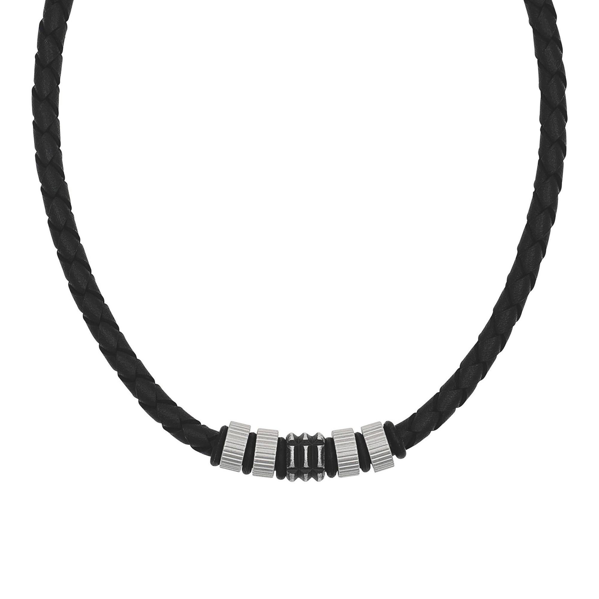 Ce collier TOM TAILOR séduit par son design masculin affirmé et ses lignes nettes. Le cordon tressé noir est rehaussé d’éléments structurés en acier inoxydable qui apportent une touche moderne et dynamique. L’élément central crée un accent élégant et complète parfaitement l’ensemble. Un accessoire polyvalent, idéal au quotidien comme pour les loisirs.