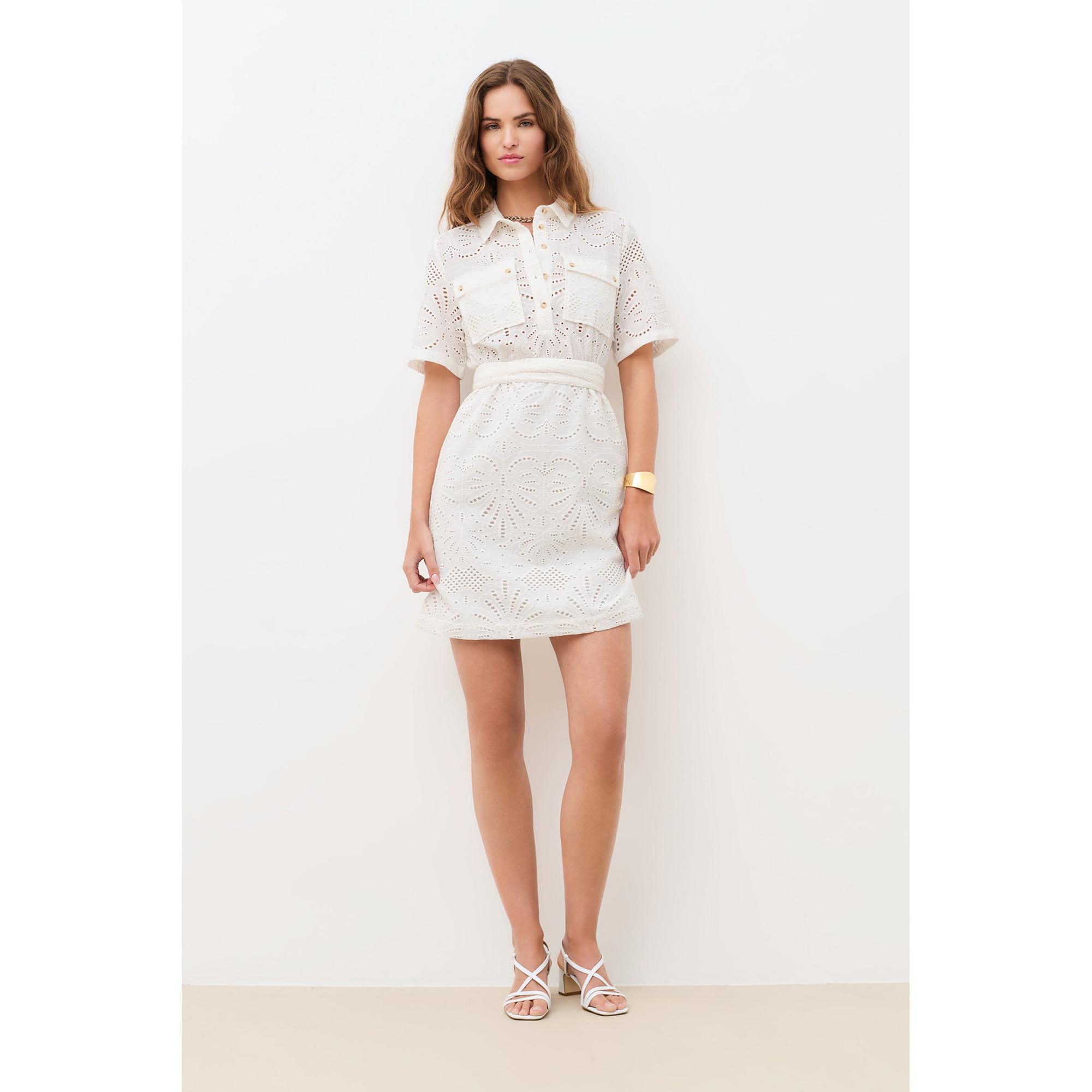 Cette robe courte en lin à manches courtes est dotée d'un col chemise classique et d'une patte de boutonnage sur toute la longueur, offrant un look intemporel et polyvalent. La robe est conçue avec deux poches poitrine, ajoutant une touche d'utilité et de style. Une ceinture assortie cintre la taille, créant une silhouette flatteuse.