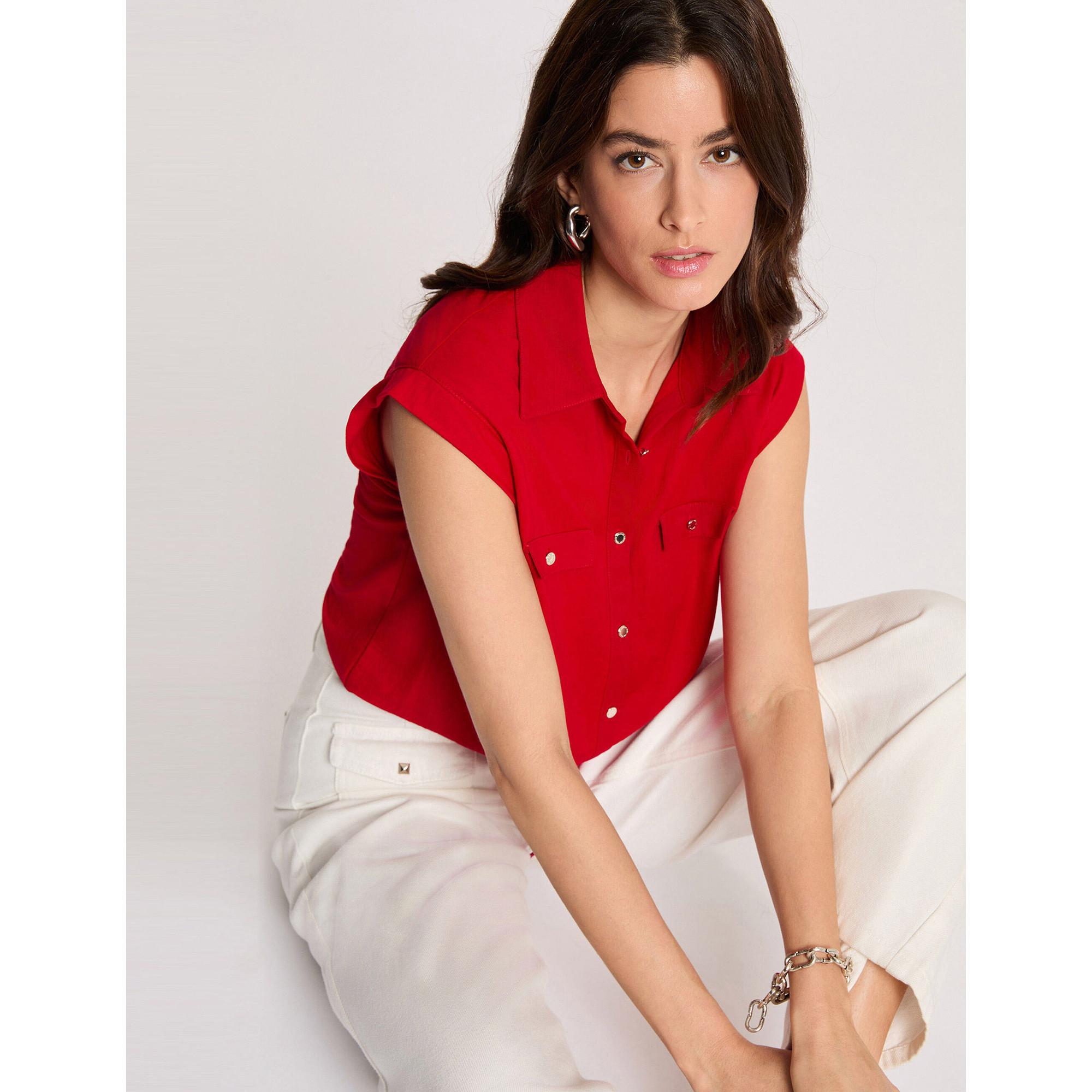MORGAN Blouse sans manches col polo et nœud à la taille