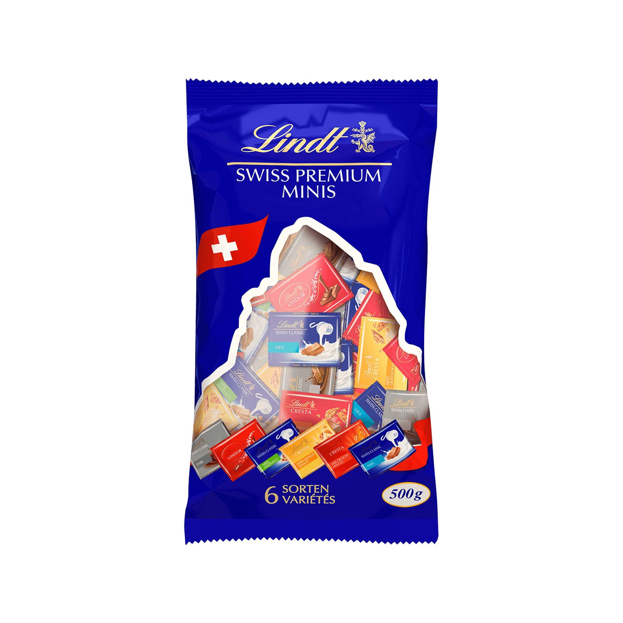 Savourez avec le sachet de Lindt Napolitains assortis 500g six classiques de la maison Lindt en format mini: Lait, Lait-Noisettes, LINDOR Lait, Cresta Lait, Cresta Blanc et Crémant.