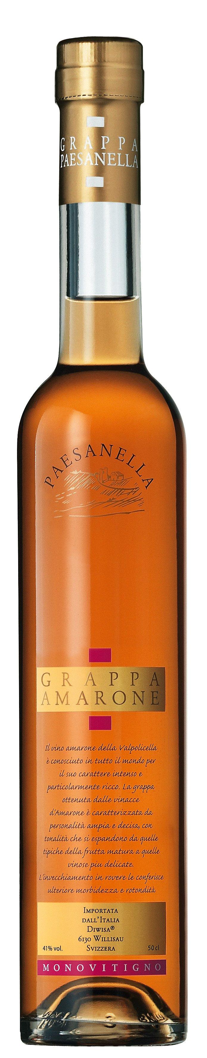 L’Amarone, vin doc de la Valpolicella (Vérone), est célèbre dans le monde entier pour son caractère intensif et sa saveur particulière- ment riche en fruits rouges mûrs. La grappa obtenue à partir du marc d'Amarone se caractérise par sa personnalité forte et décidée. L’éventail de ses tonalités s’étend des fruits mûrs à celles vineuses et plus délicates. Le vieillissement en chêne rouvre lui confère une ultérieure douceur et corpulence.