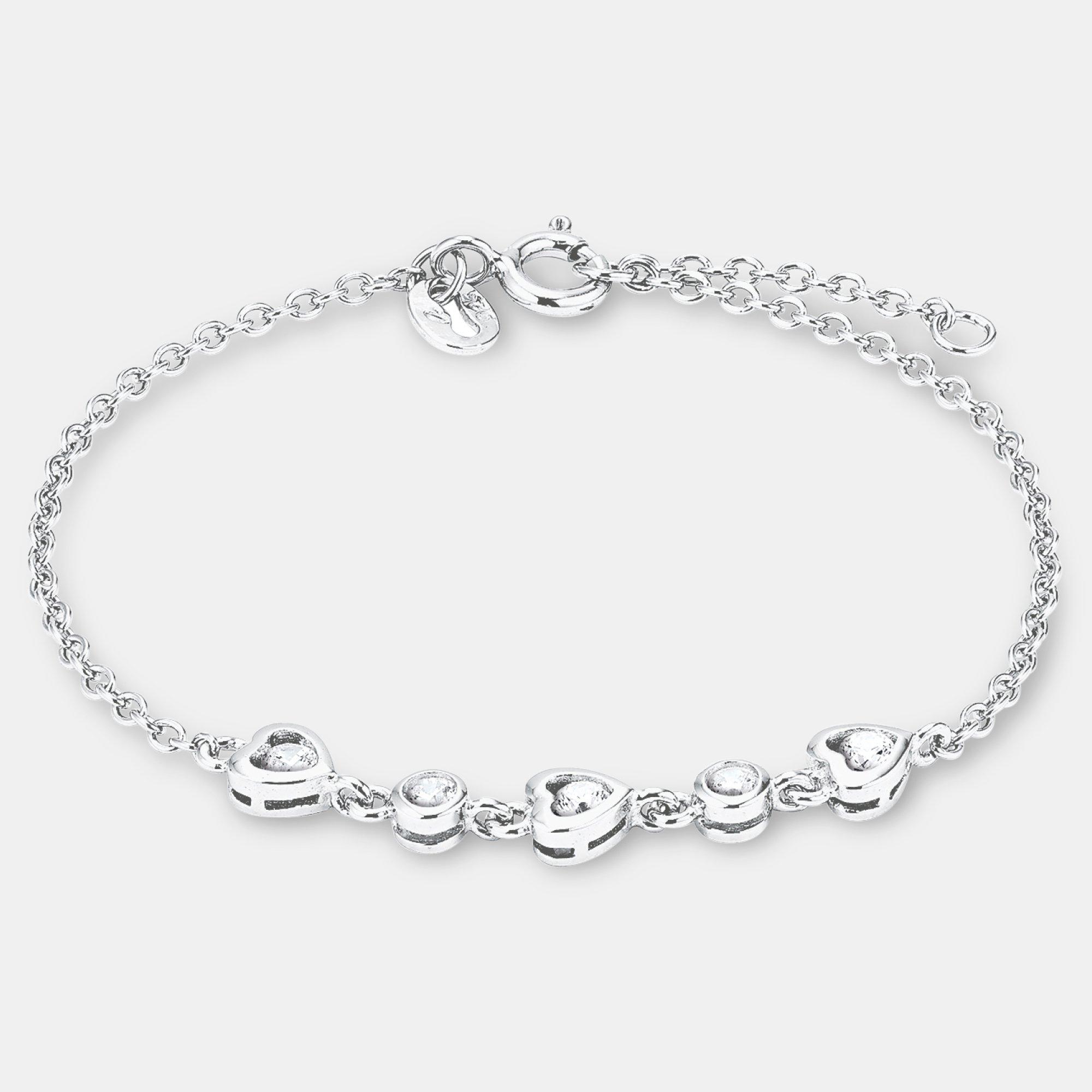 Bracelet doux par amor pour femmes et adolescentes en argent sterling 925 rhodié de haute qualité. La chaîne réglable en longueur (14 + 2 cm) abrite des petits cœurs avec des pierres de zirconium blanches.