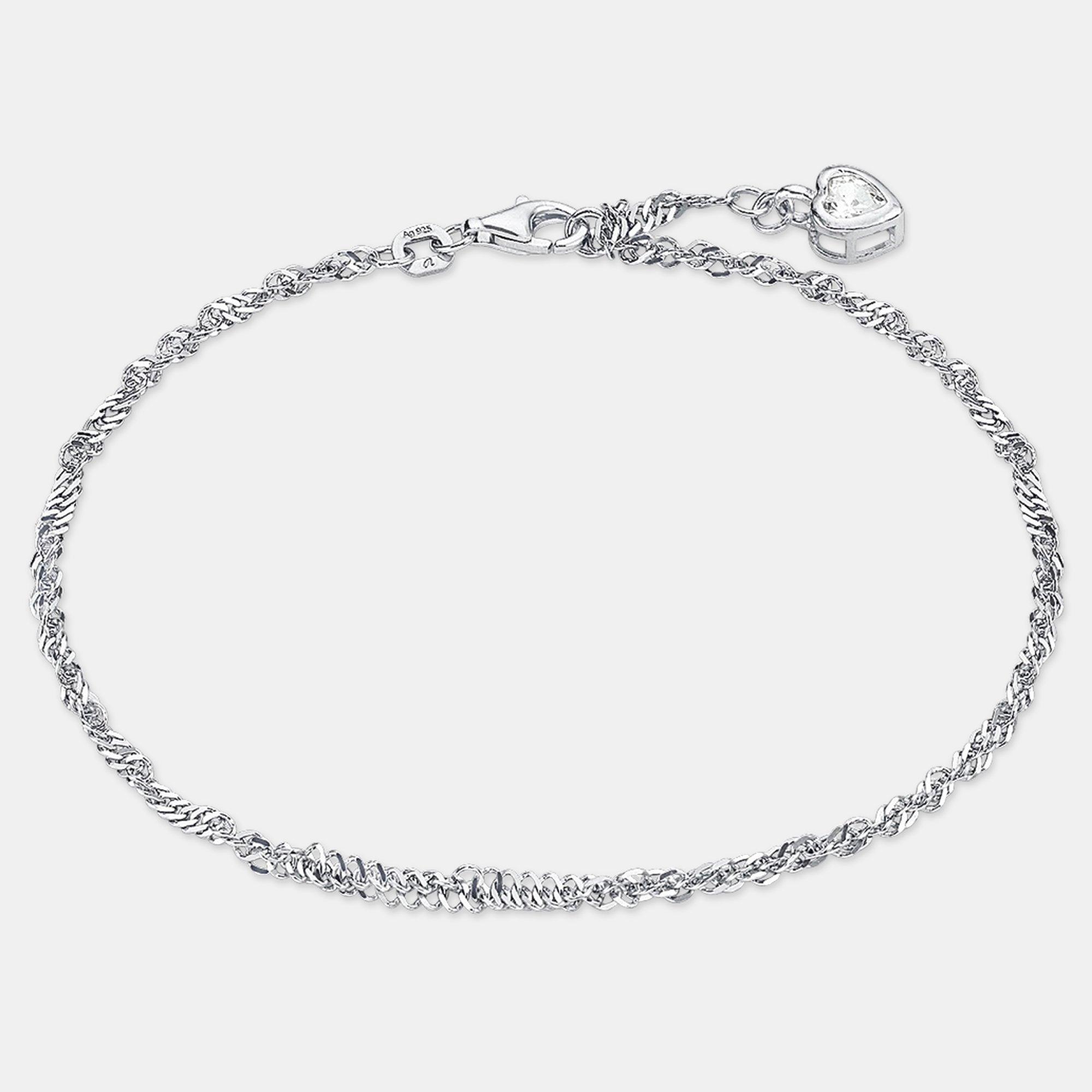 La chaîne de cheville filigrane d'amor au motif Singapour orne la cheville en été. Le pendentif en forme de cœur avec un zircon décoratif apporte un élément vedette subtil : une couche protectrice de rhodium protège la chaîne de cheville du ternissement.
