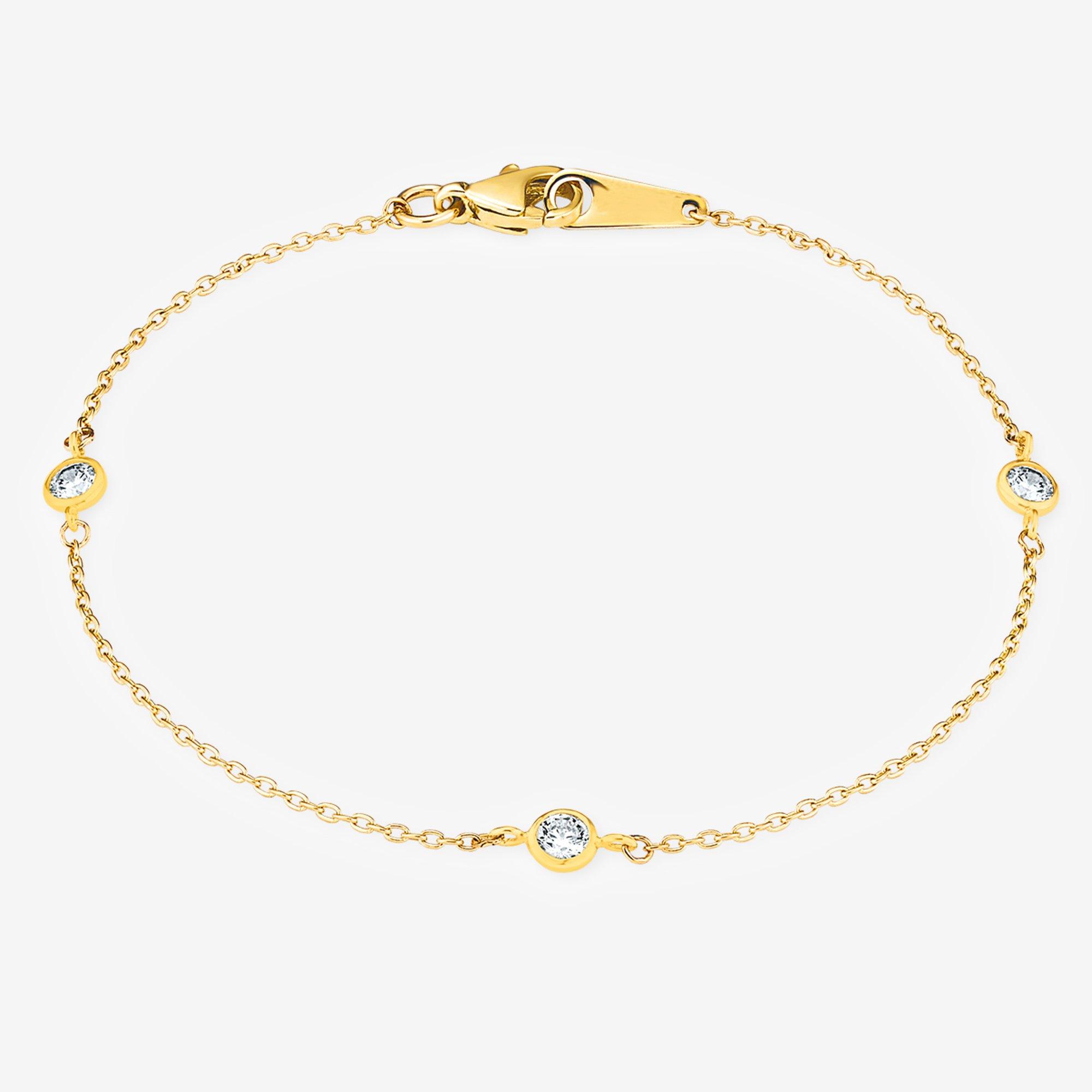 Ce bracelet pour femmes en filigrane de 18 cm avec trois petits pendentifs intégrés est composé d’or jaune 375 brillant. Bracelet serti d’oxyde de zirconium blanc (synth.). Un mousqueton pratique sert de fermeture pour le bracelet à maille marine.