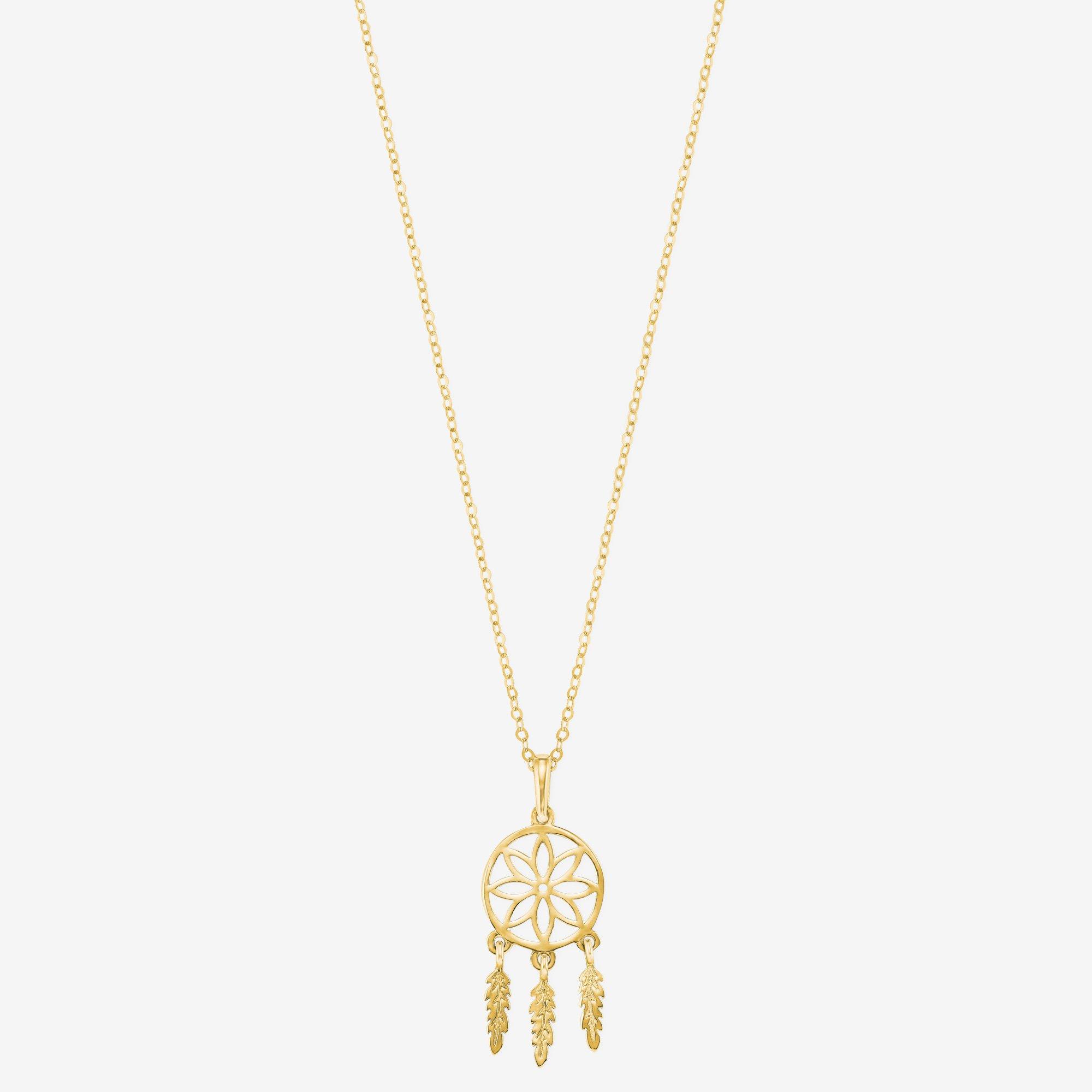 Les attrapes-rêves sont des objets indiens cultes et protègent contre les mauvais esprits et les mauvais rêves. Cette magnifique chaîne maille marine de 42 cm de longueur avec un pendentif attrape-rêves est composée d’or jaune brillant 375. Les dimensions du bijou de style bohème sont d’environ 26 mm x 10 mm. Un anneau à ressort pratique sert de fermeture.