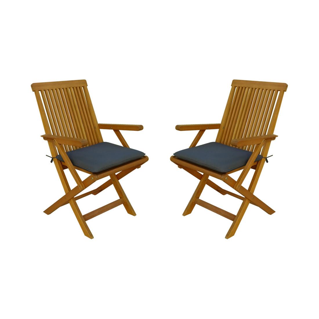 Contini Chaise de jardin pliable Coussin anthracite (set de 2) Eucalyptus