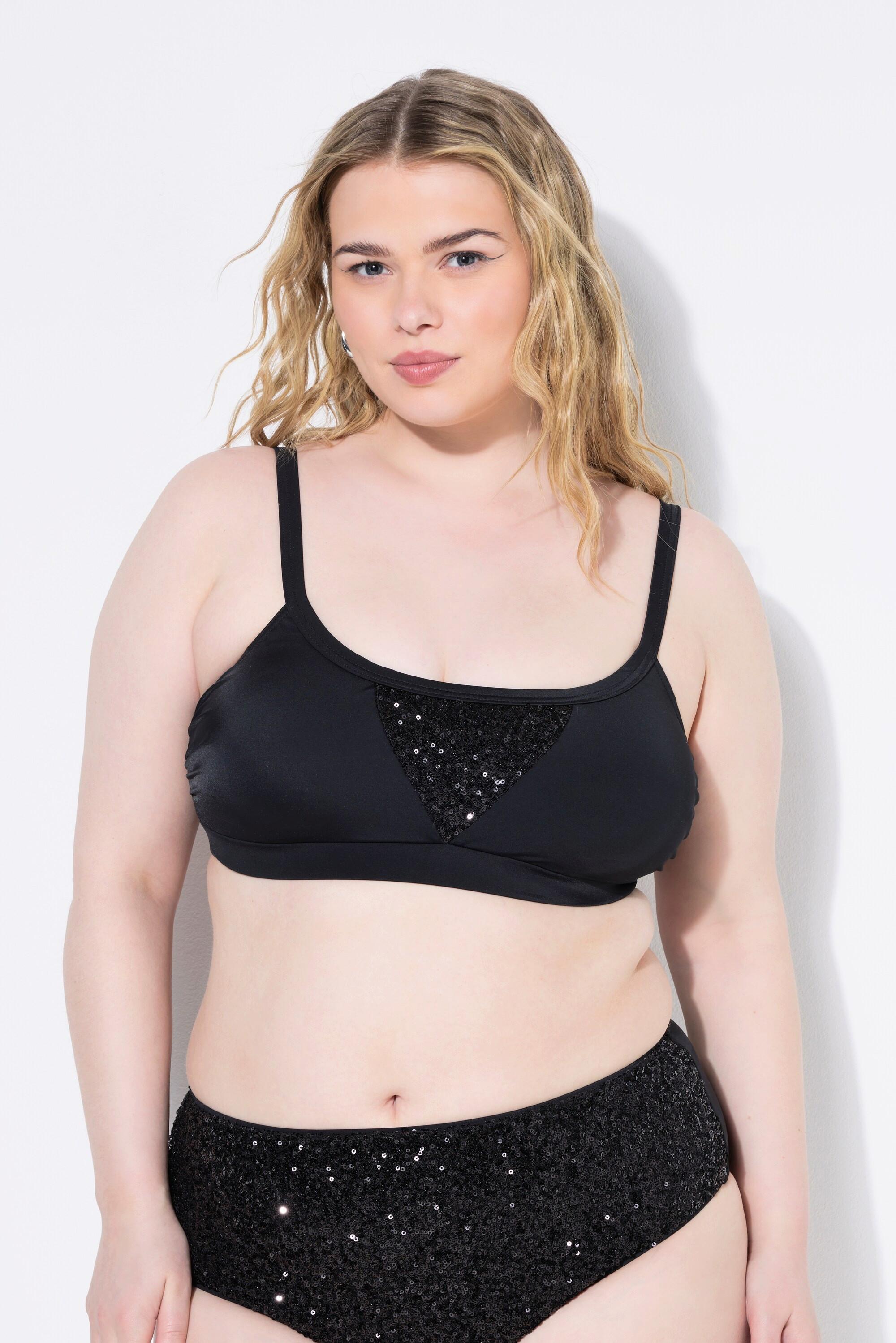 Ce haut de bikini est doté de bonnets souples et d'un design sculptant pour un ajustement confortable et flatteur. Le devant est orné de paillettes scintillantes, ajoutant une touche de glamour au maillot de bain.